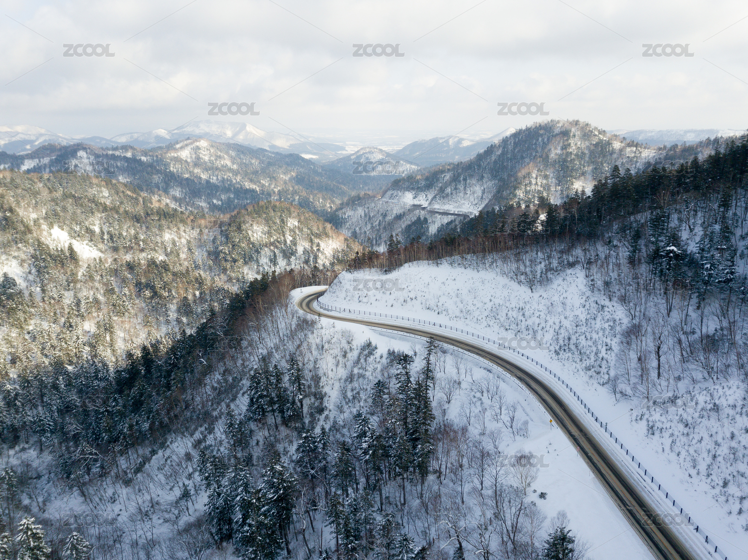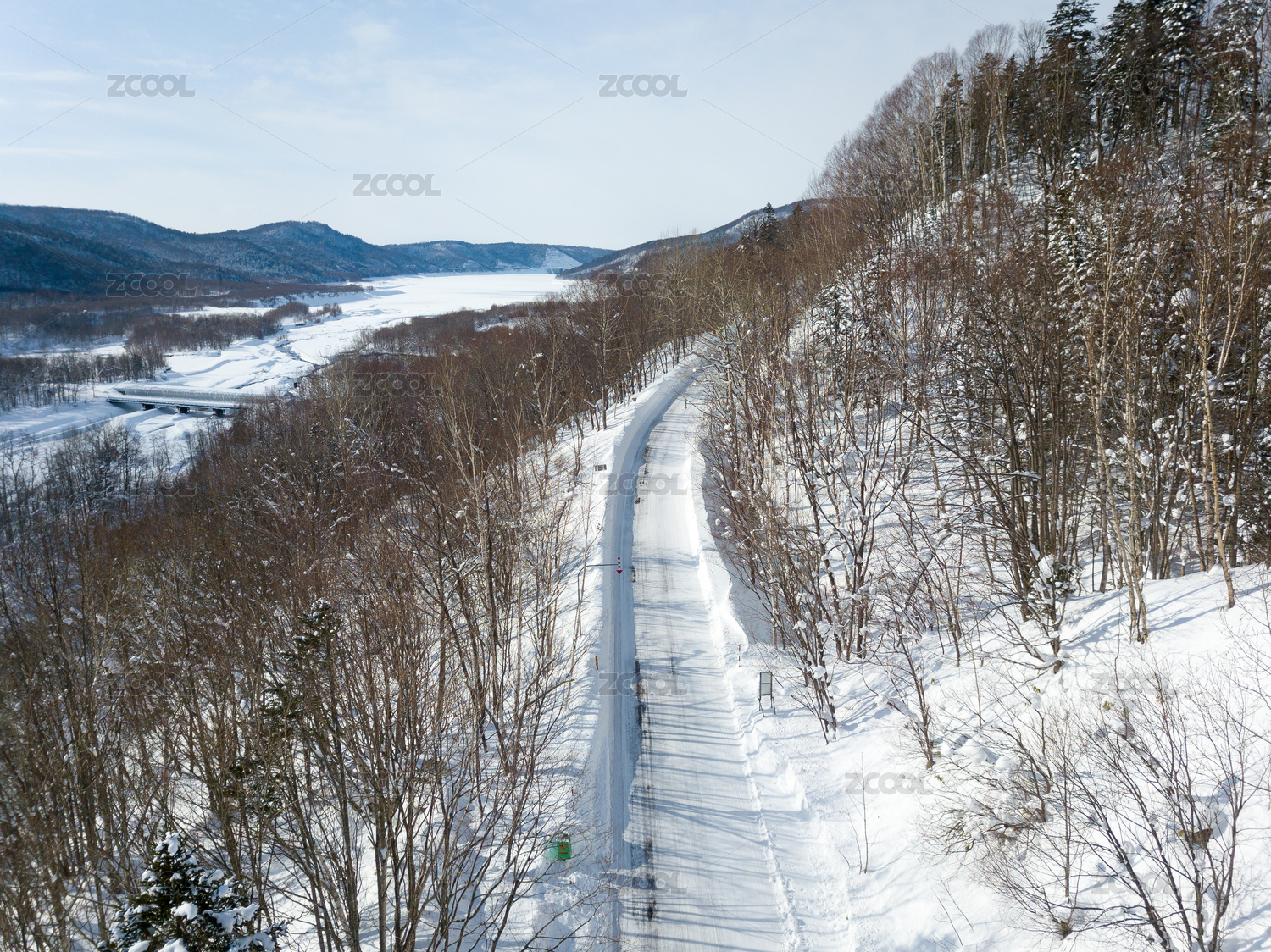 山区,针叶林,日本,北海道,荒野,道路,积雪,冬季,冬天,东北