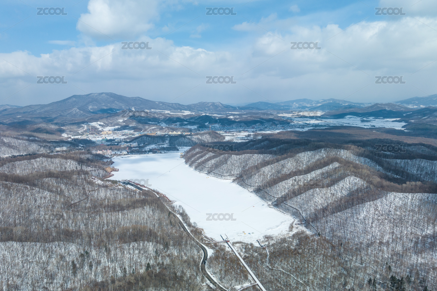 哈尔滨亚布力冬季森林湖泊风光航拍