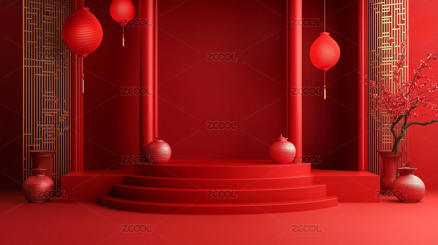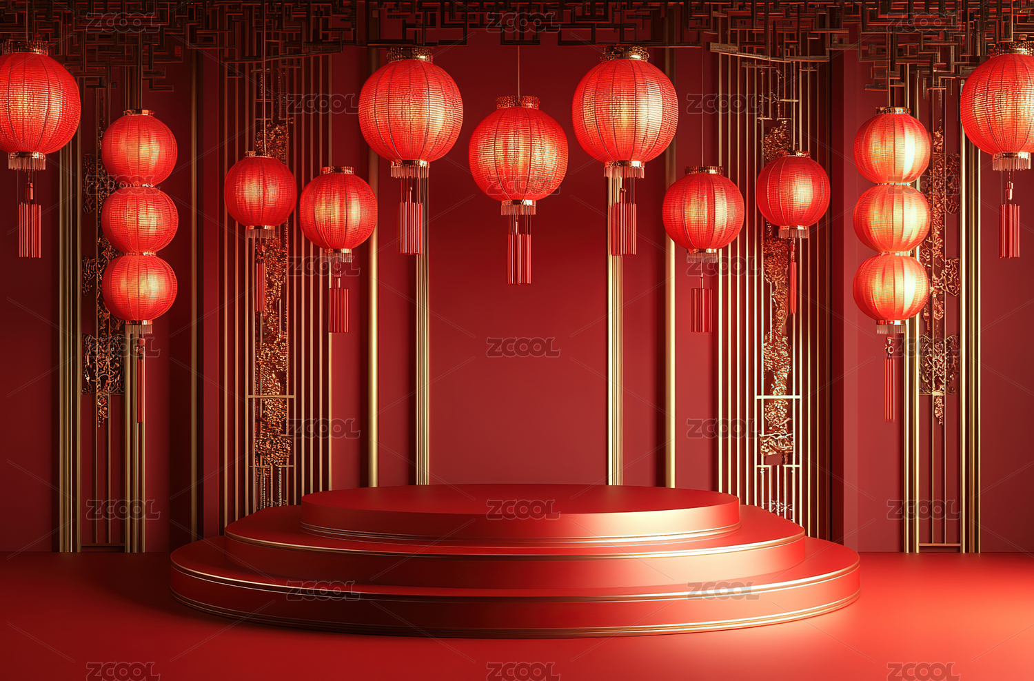 红色背景下的中式灯笼