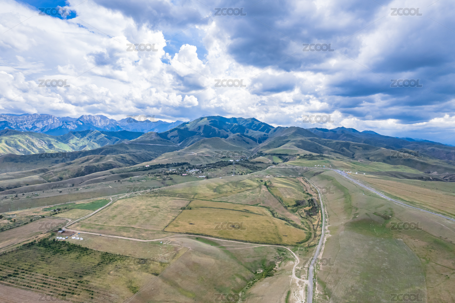 中国新疆伊犁克孜勒阔拉村草原公路风光航拍