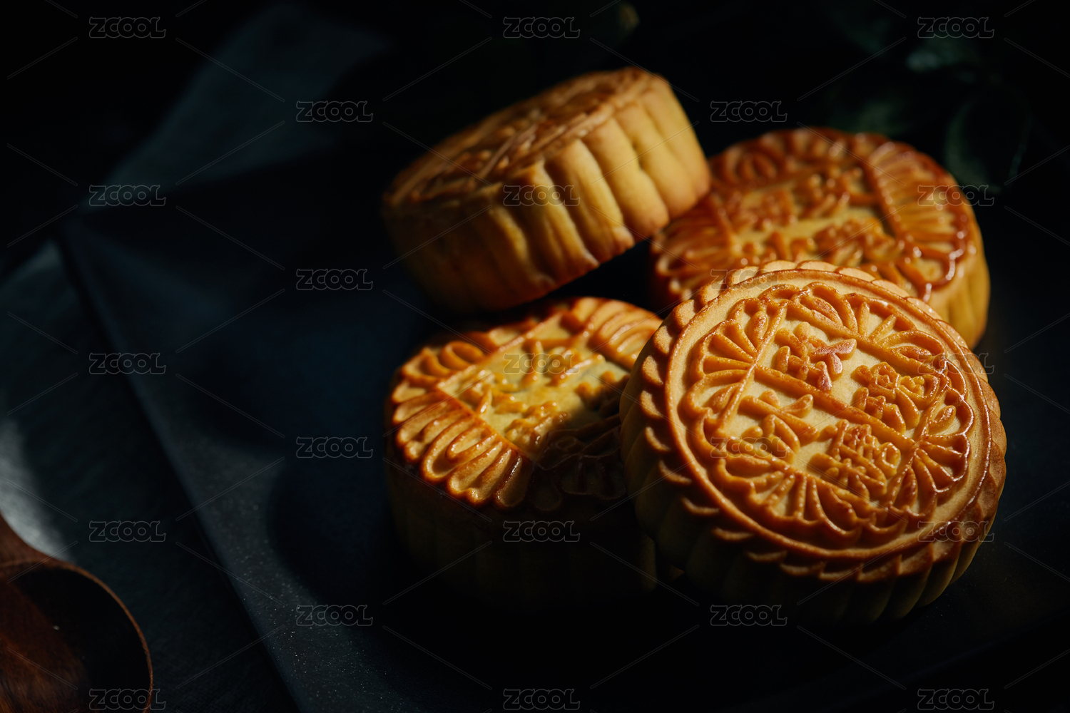 深色背景上有几块中式月饼