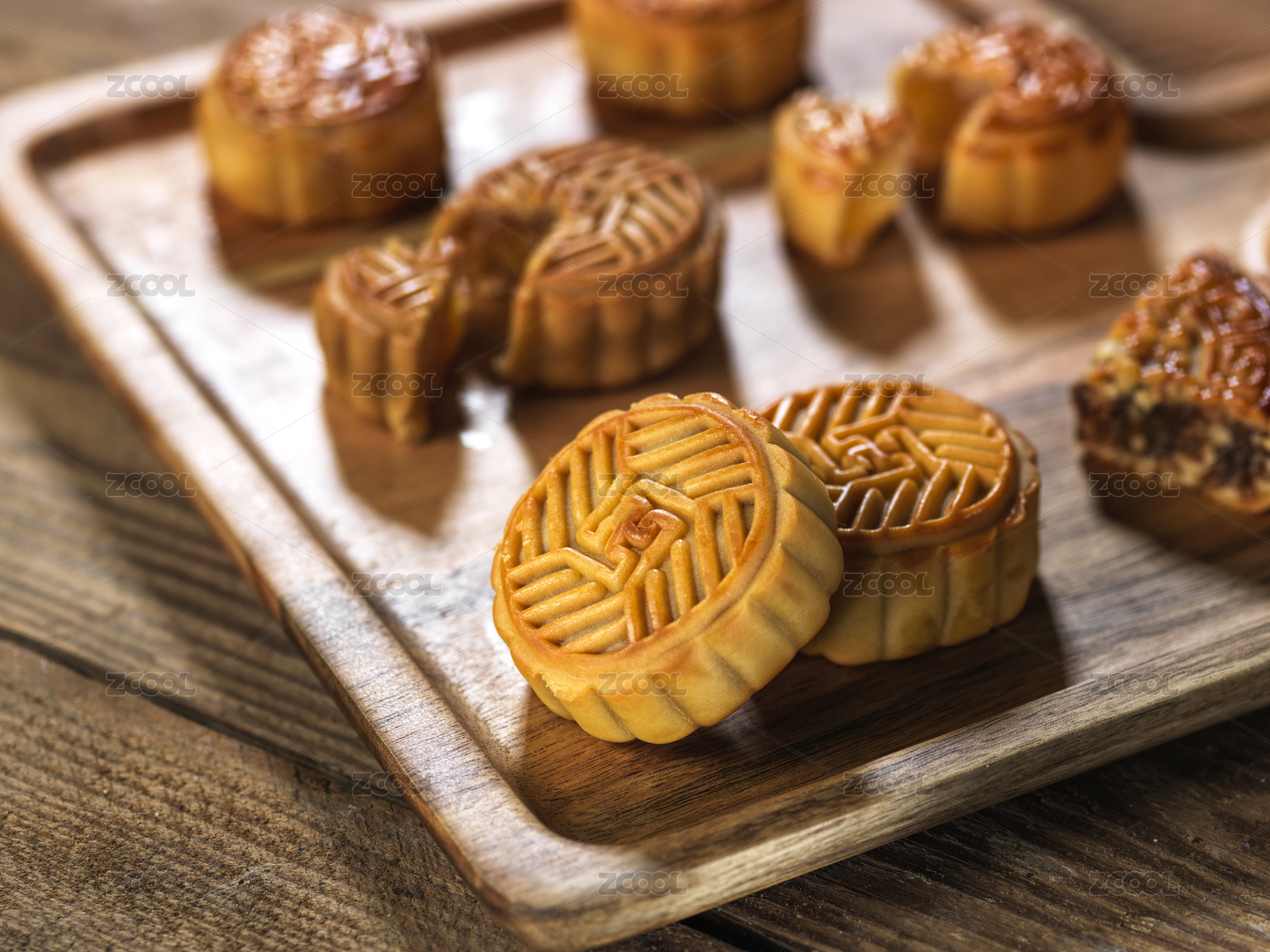 中秋木盘月饼传统中式糕点美食特写