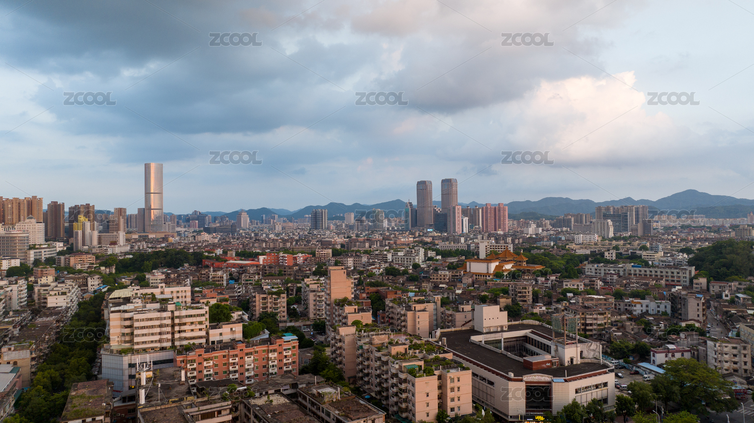 中国广东中山市利和广场双子塔金鹰广场城市风光
