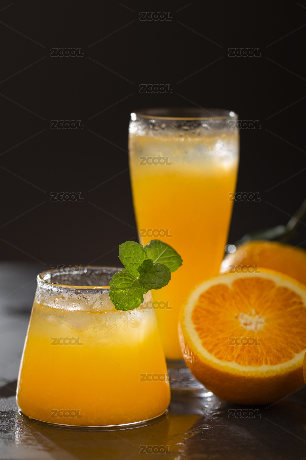 鲜榨橙汁,一杯橙汁和橙子在桌子上