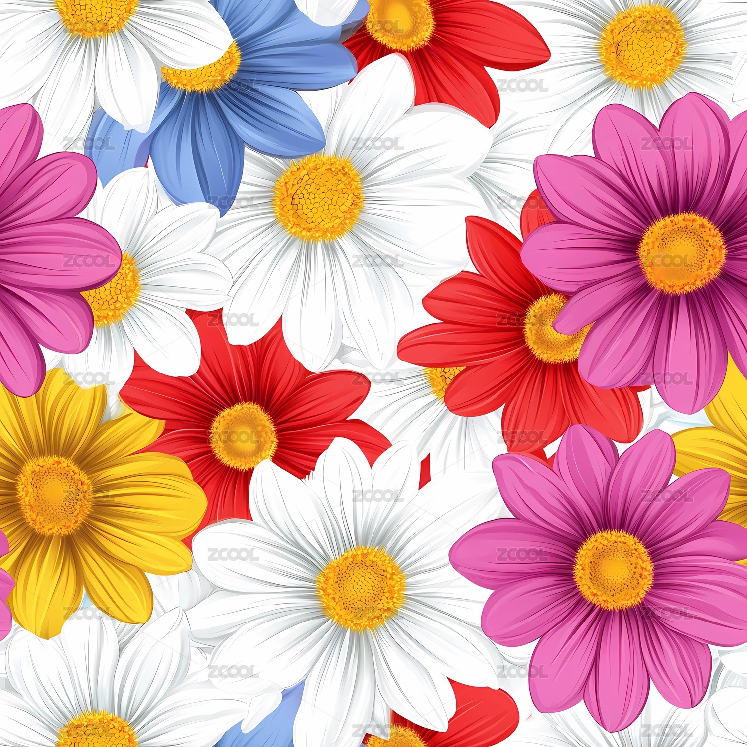 彩色线条花卉重复无缝图案纺织品装饰背景