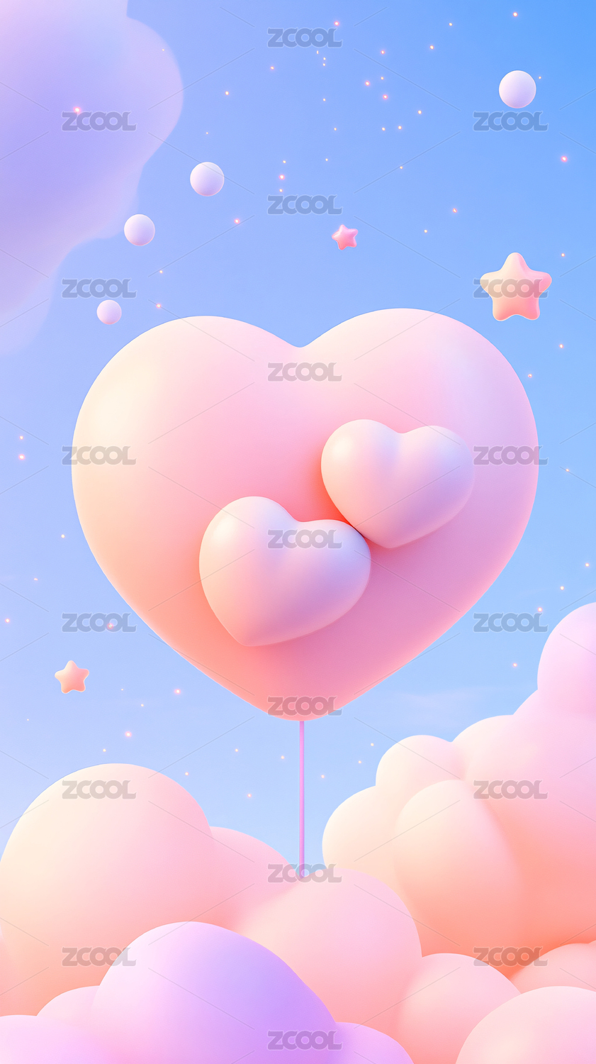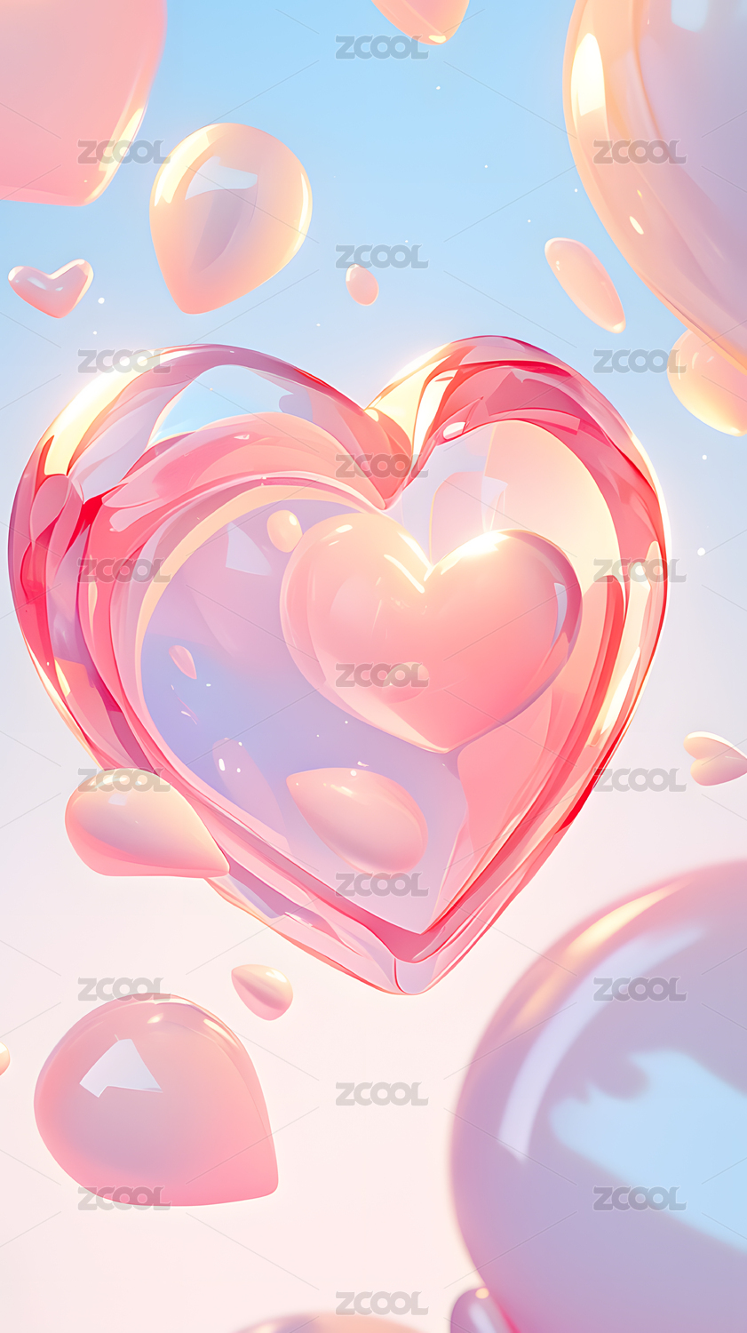 情人节,爱心,七夕,浪漫,粉红,气泡,插画,卡通