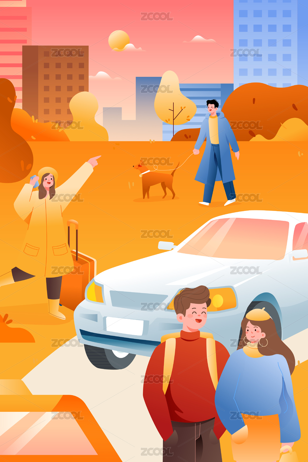 插画,自然,度假,户外,夏天,城市,旅行,绿色,节气,出行