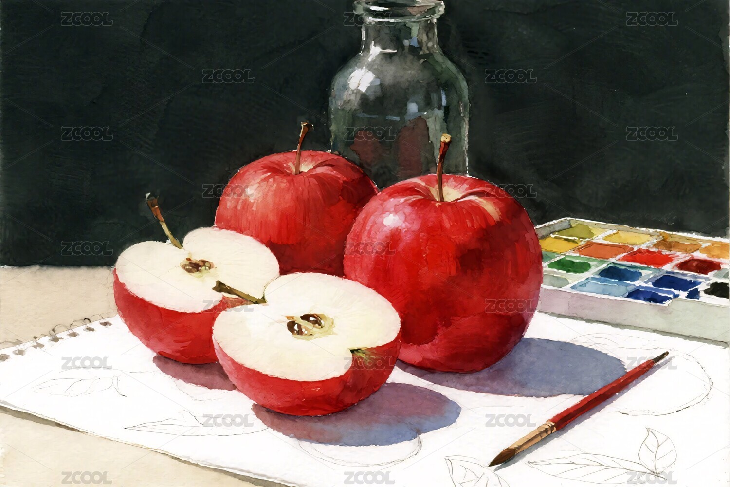 水彩风格,自然,食物,新鲜,插画,装饰,背景,艺术化,水果,果实