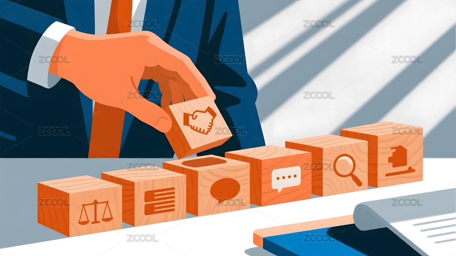 商务人士摆放象征合作积木