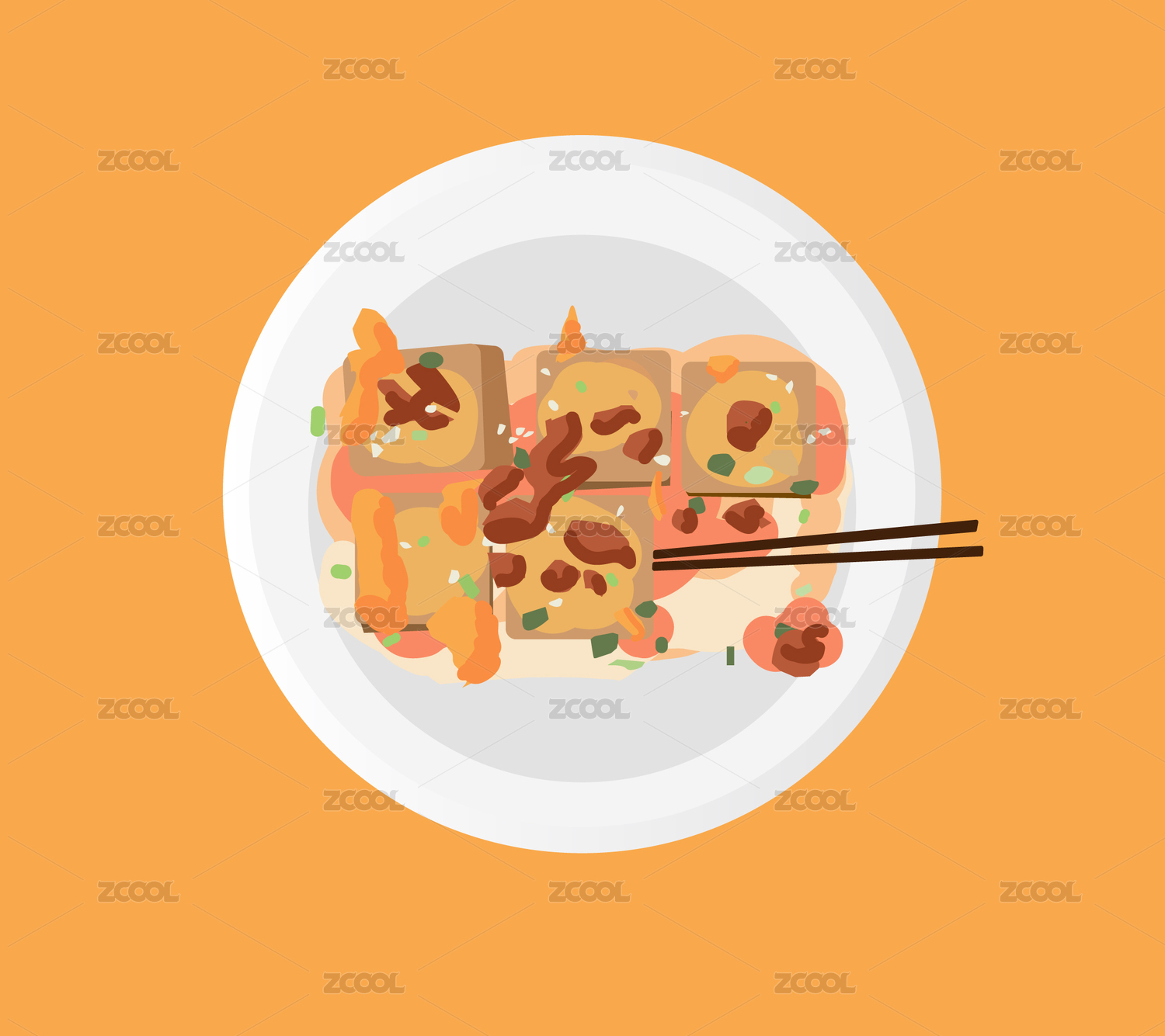 矢量爆浆豆腐小吃手绘食物插图