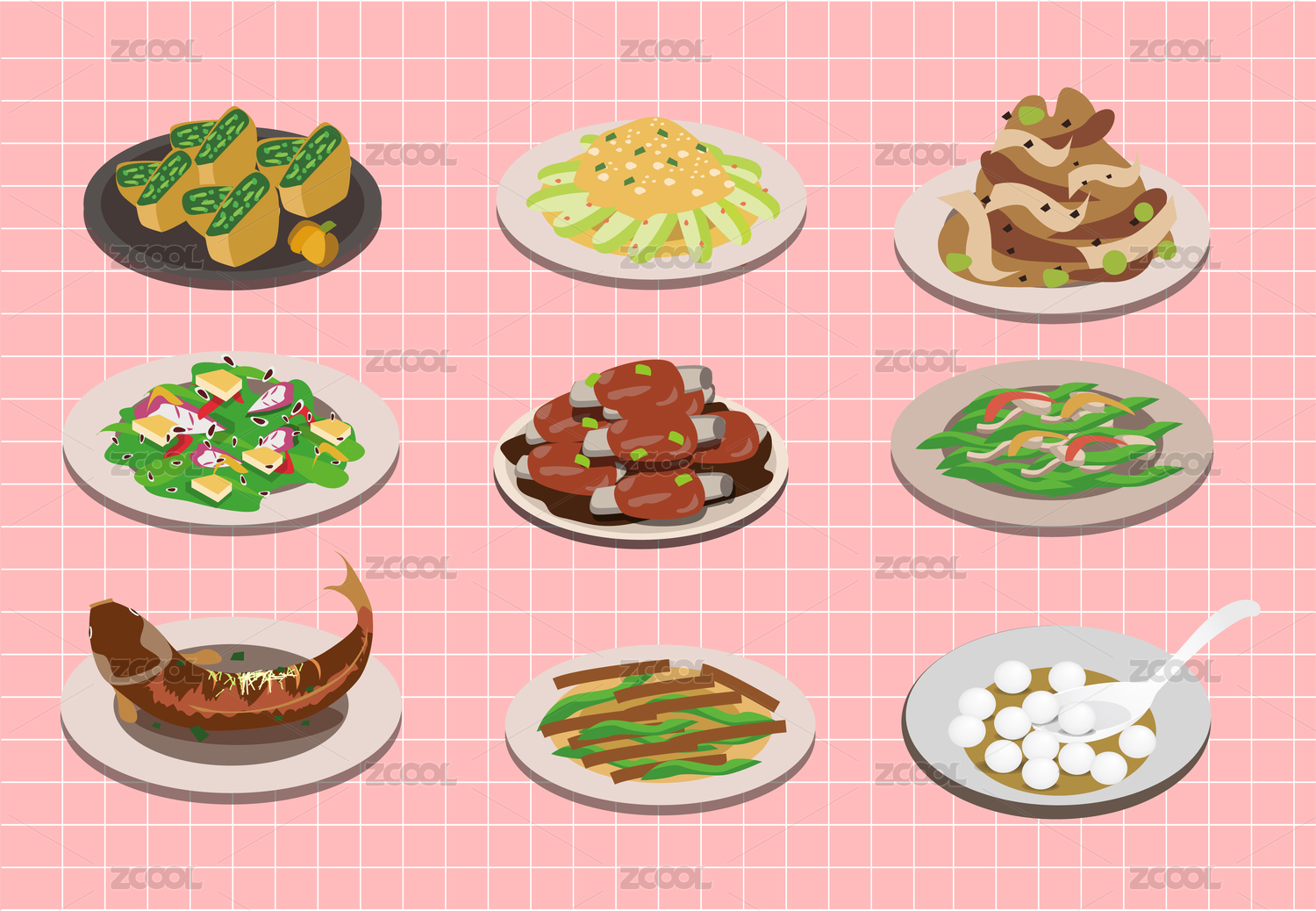 不同矢量中国菜