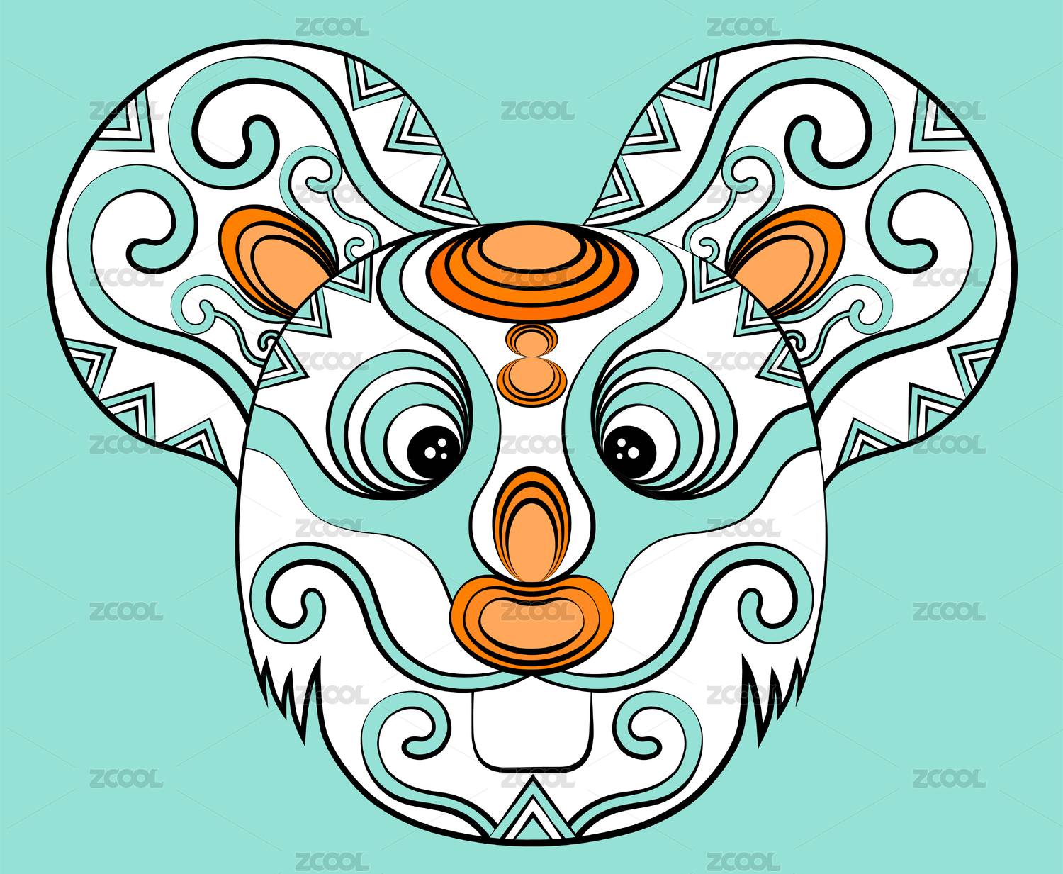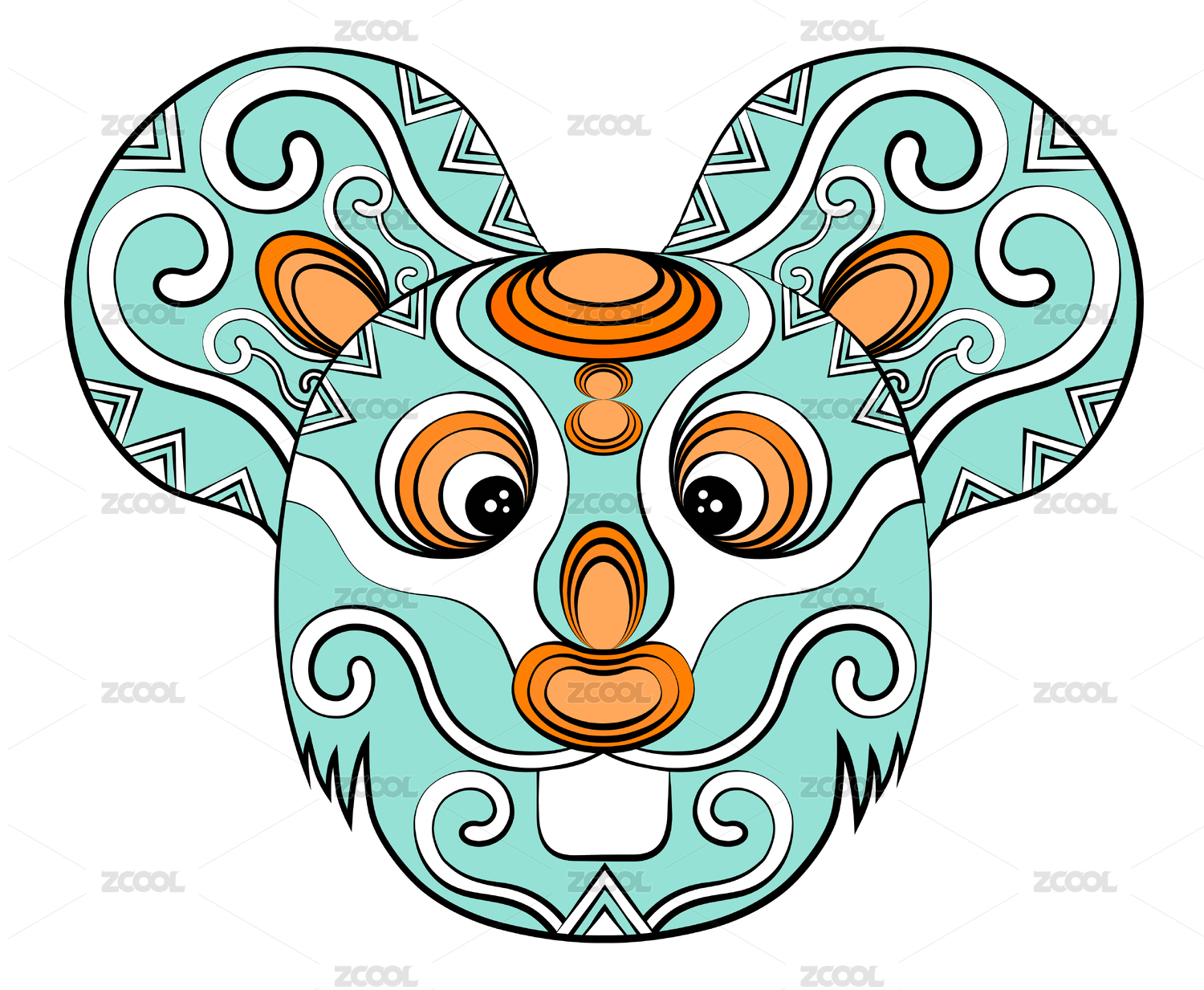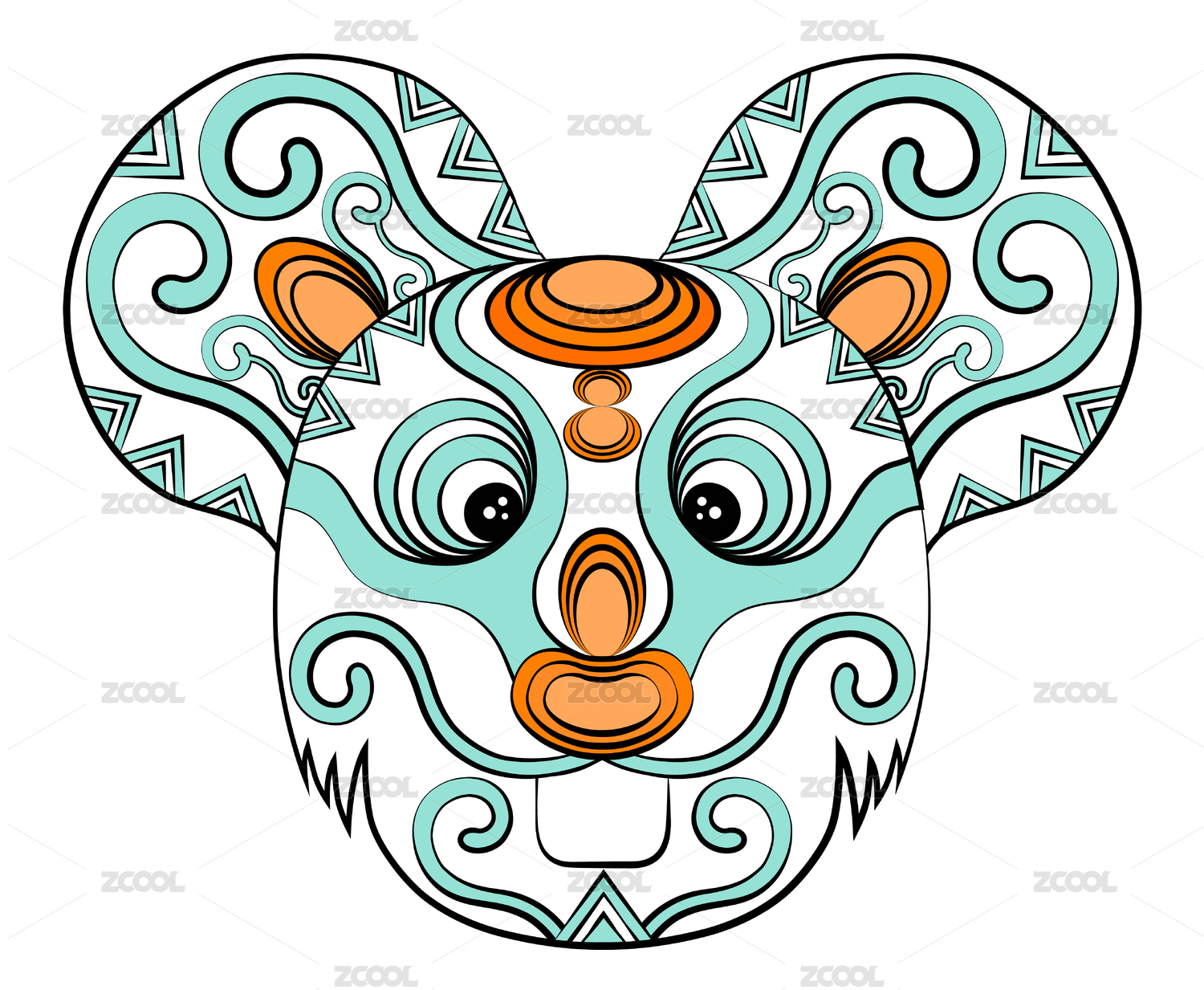 十二生肖鼠头简约潮流纹样印花图案矢量插画