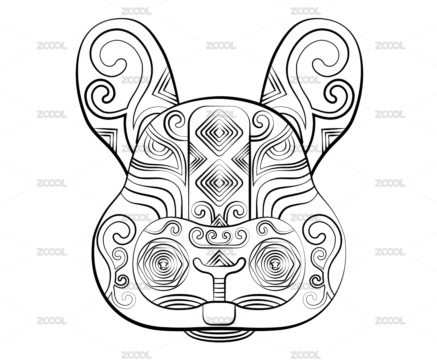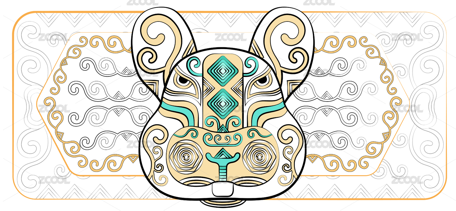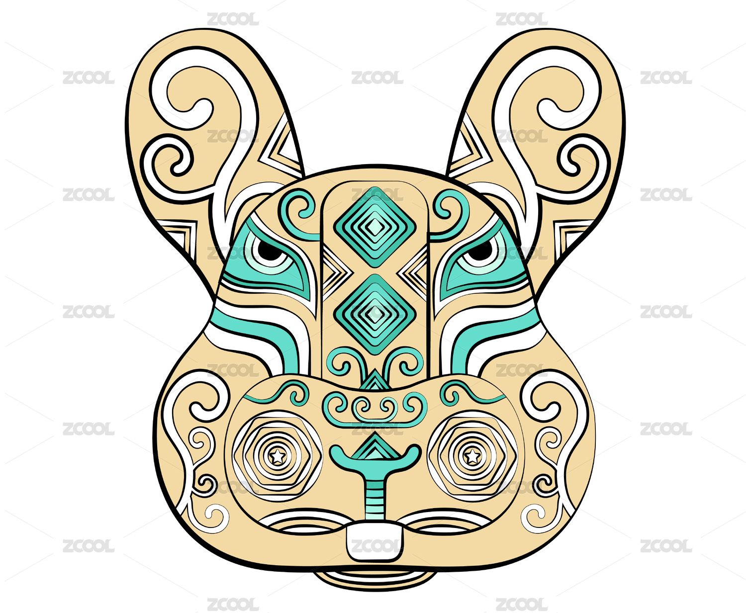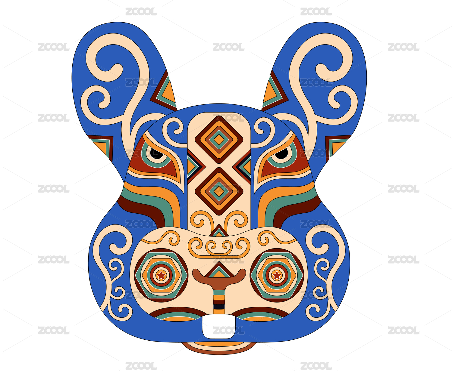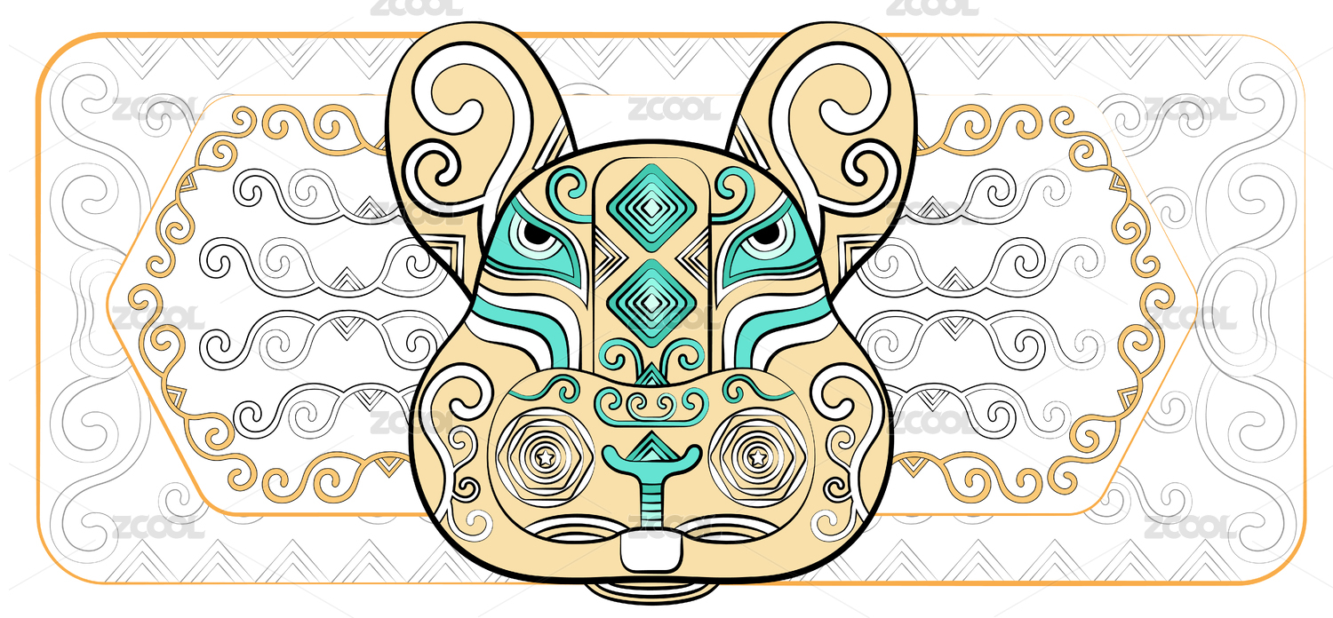 国潮十二生肖兔头传统装饰纹样卡通形象