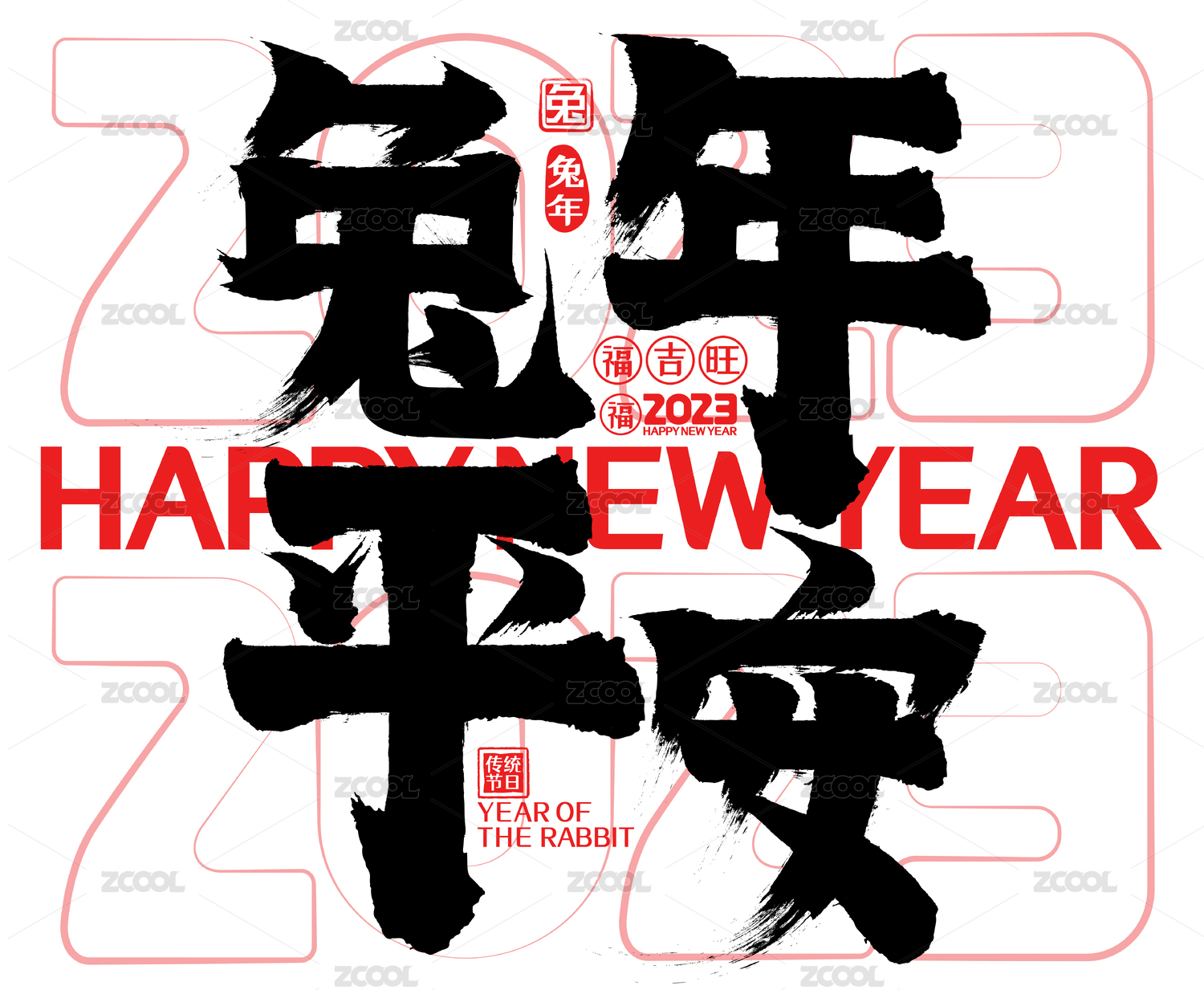 兔年来了2023春节新年喜庆数字毛笔字