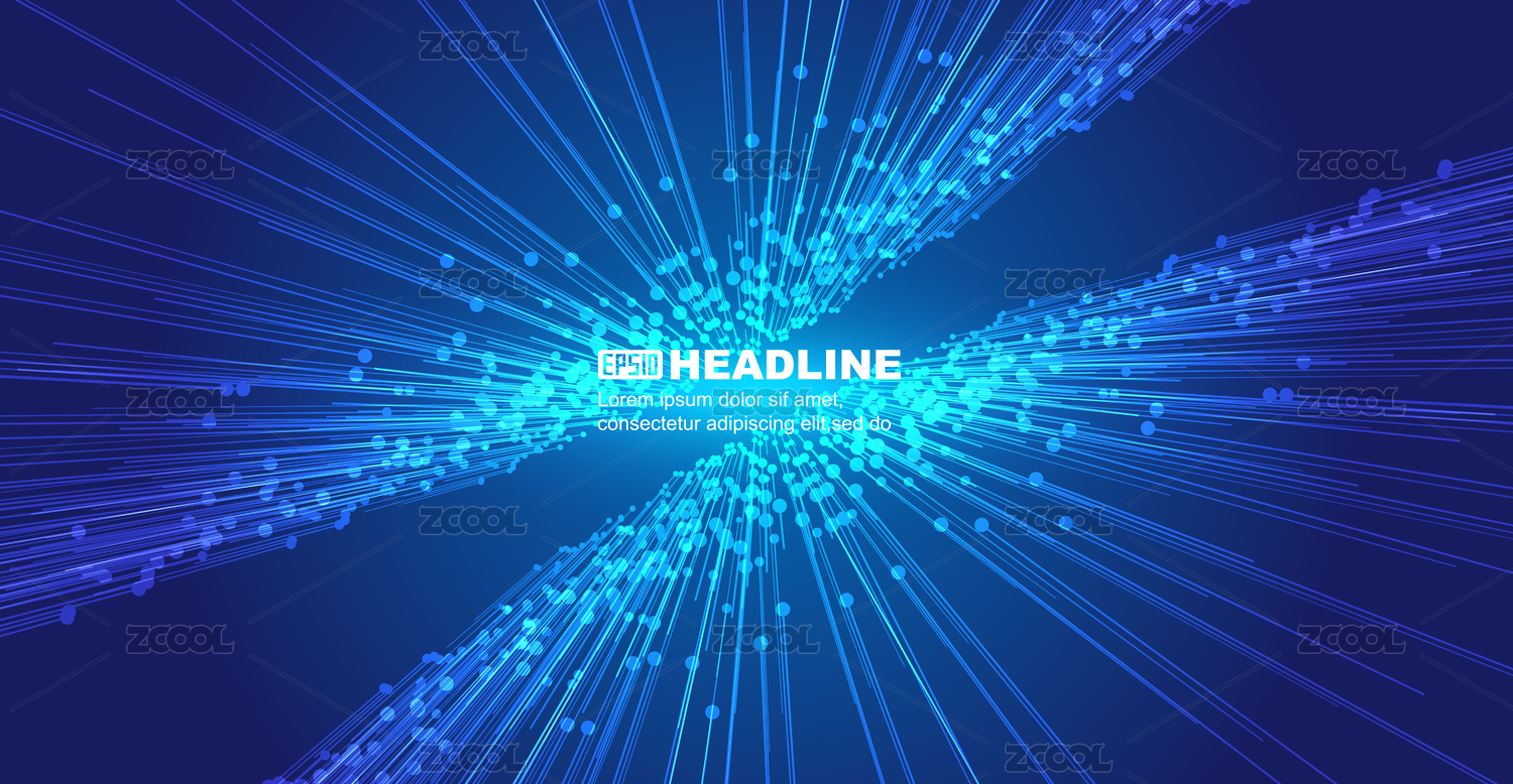 两束向外延伸发射的蓝色科技粒子线条