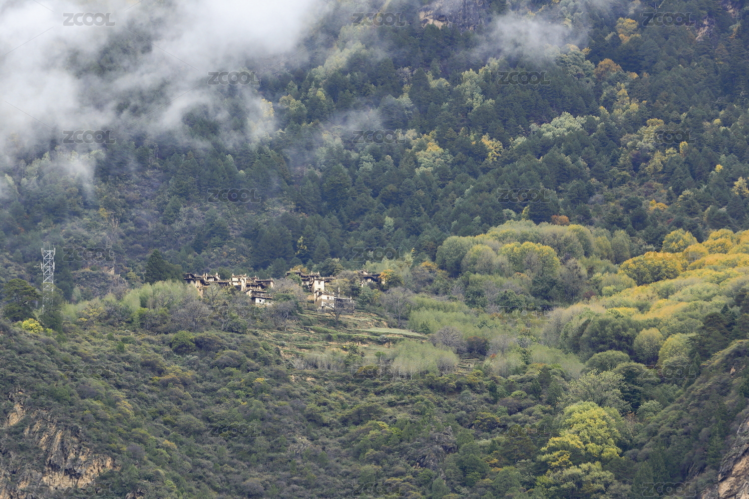 中国四川甘孜丹巴布科村的高山上的藏寨民居
