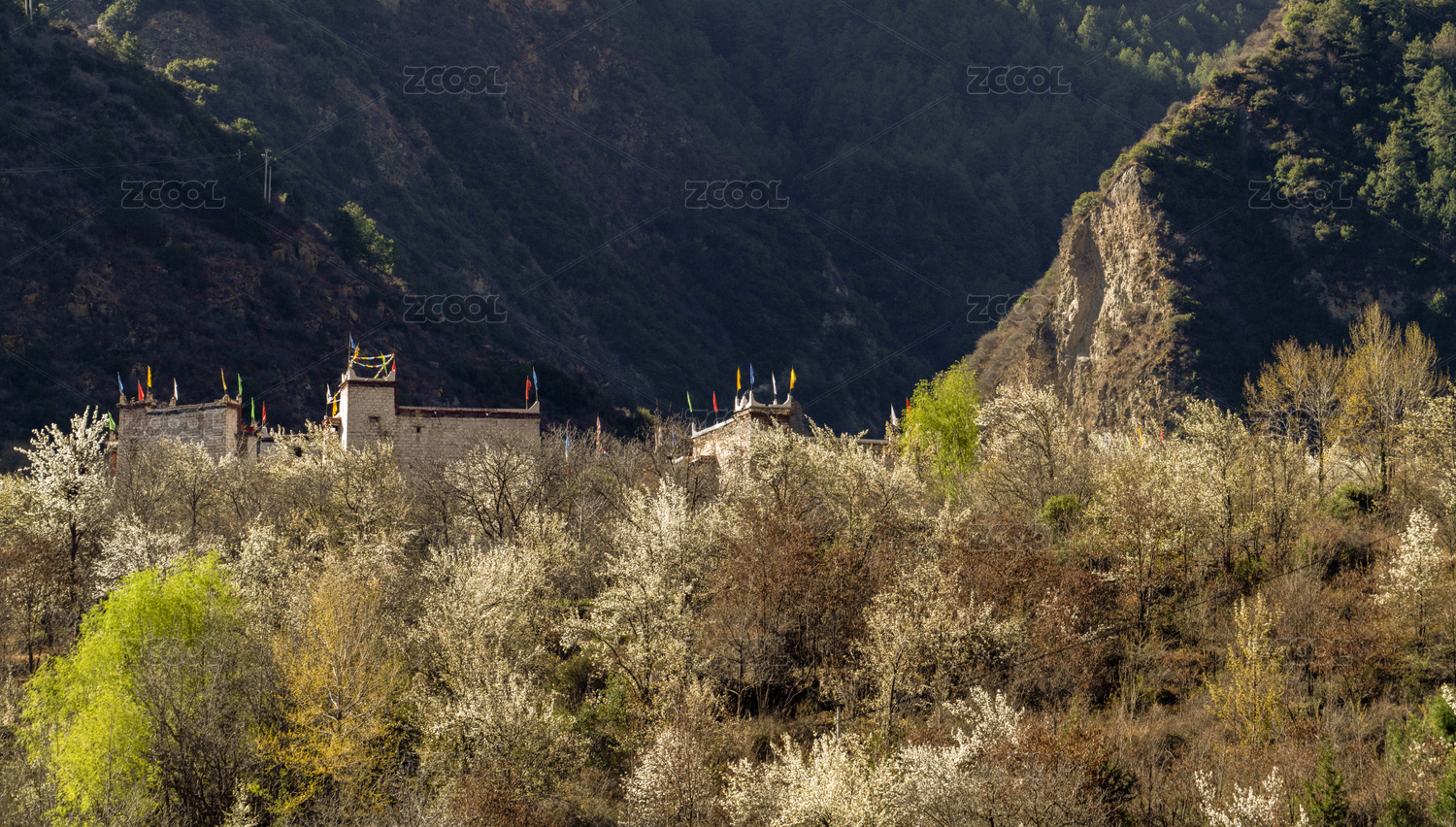 阳光下的四川甘孜丹巴的中里和甲居藏寨