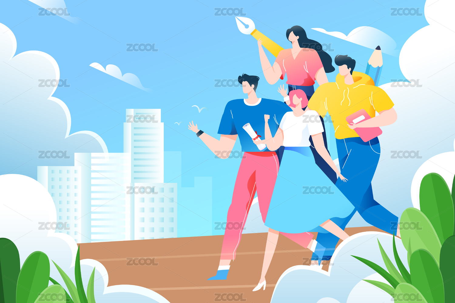 五四青年节朋友聚会年轻人高考毕业团队插画