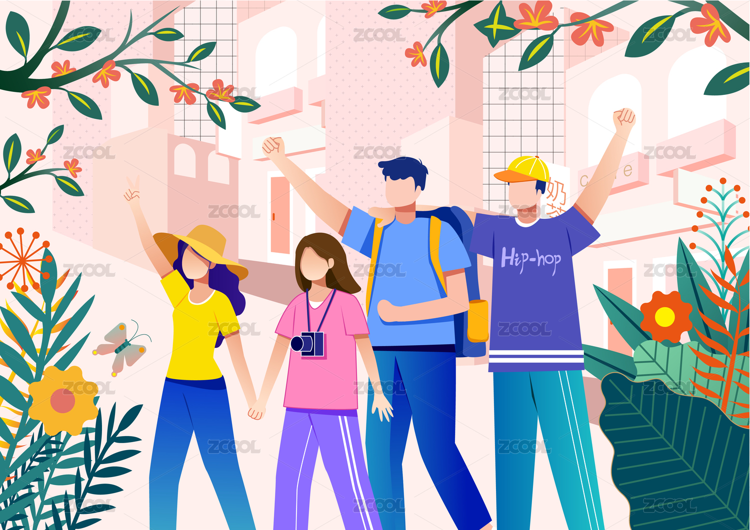 人物毕业旅行高考录取出游夏天旅游矢量插画