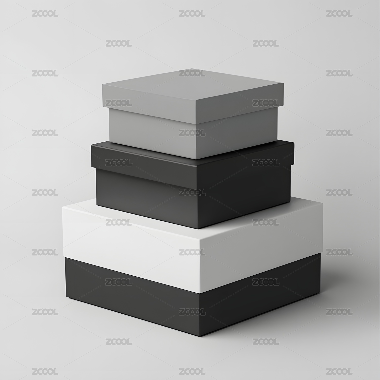 简约现代黑白灰几何纸盒立体堆叠静物摄影