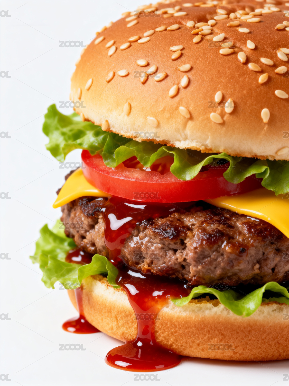 牛肉汉堡,巨无霸,多汁,牛肉饼,生菜,番茄,奶酪,快餐,美食,堆叠