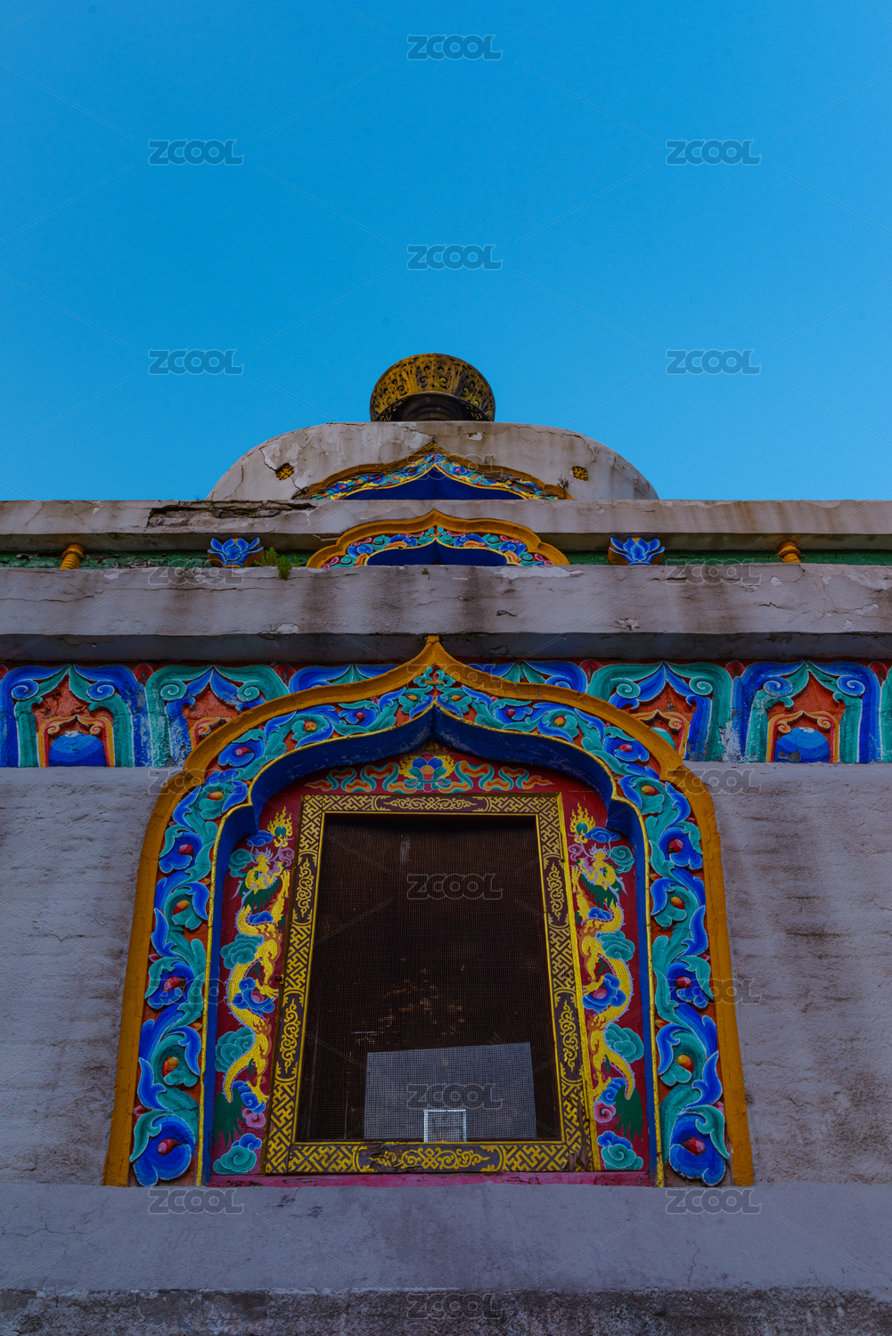 阿坝州康玛尔寺寺庙大门精美的斗拱彩绘