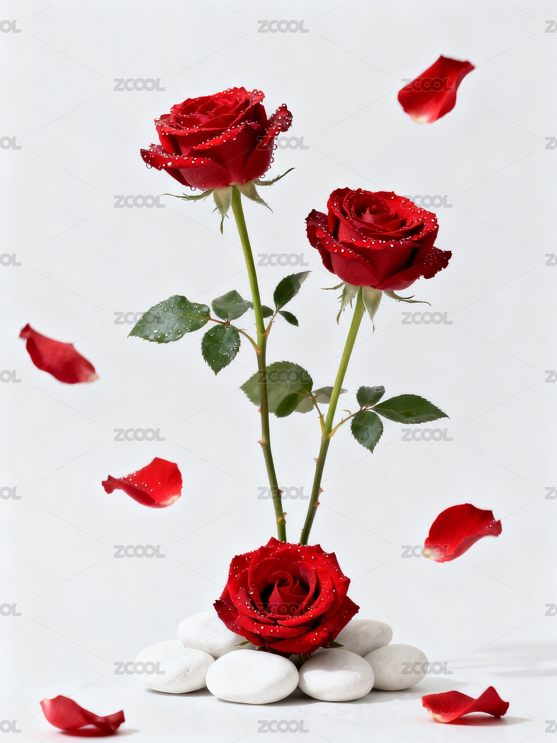 数码红色透明玻璃玫瑰植物抽象海报背景