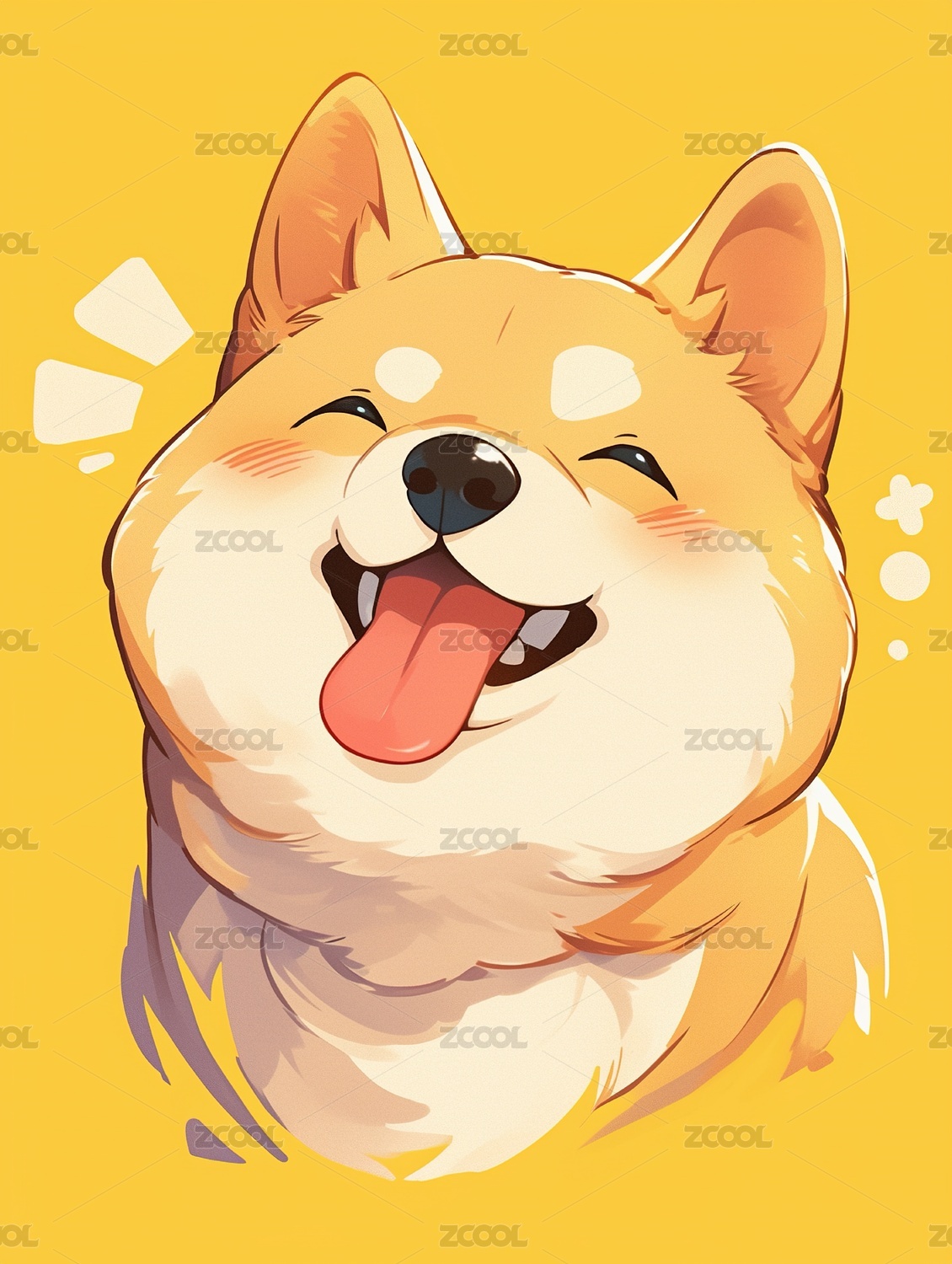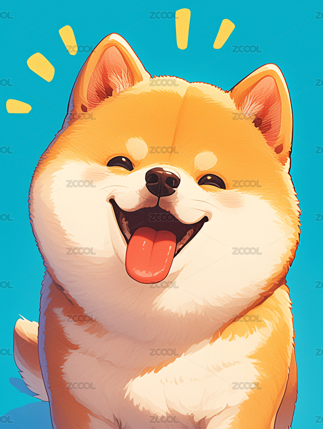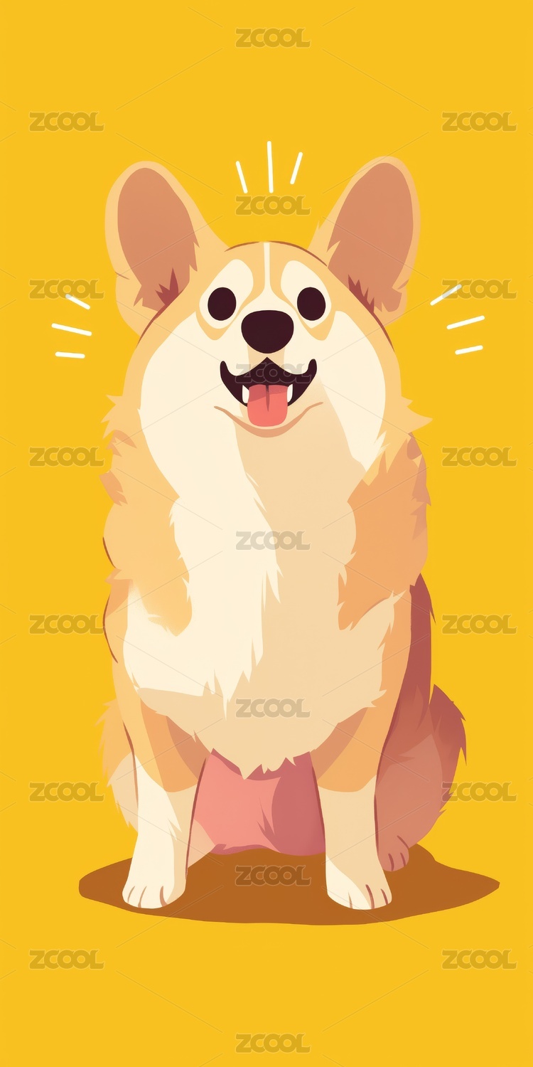 扁平小狗插画明亮一只夸张可爱宠物狗绘画