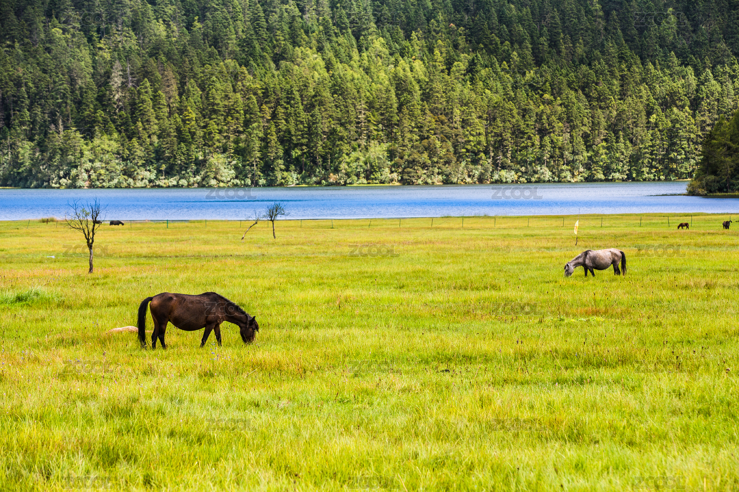 夏季四川川西高原龙灯草原上的草甸和马