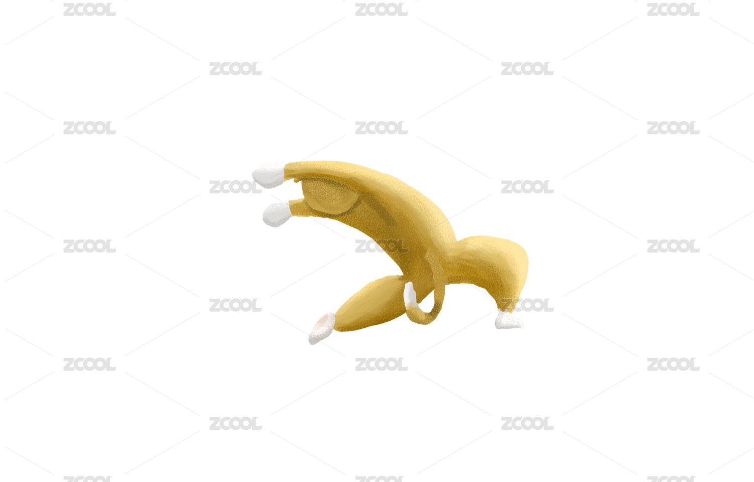 白色背景棚拍香蕉悬浮在空中坠落向下的概念