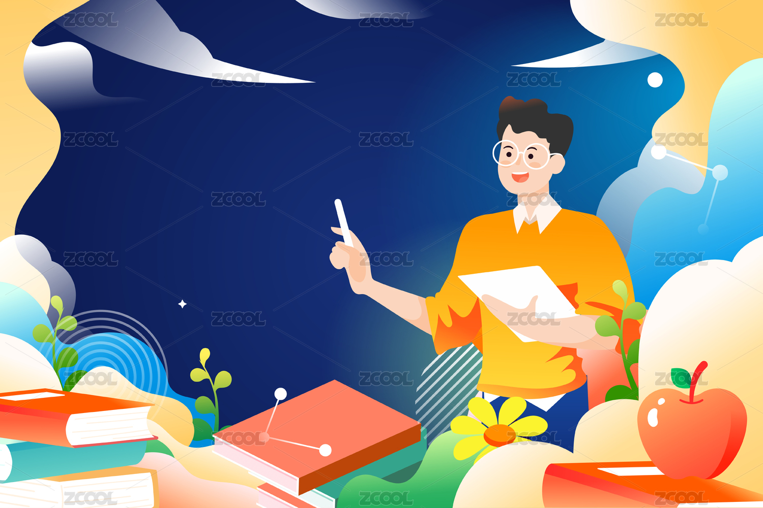教师手持铅笔教学插画