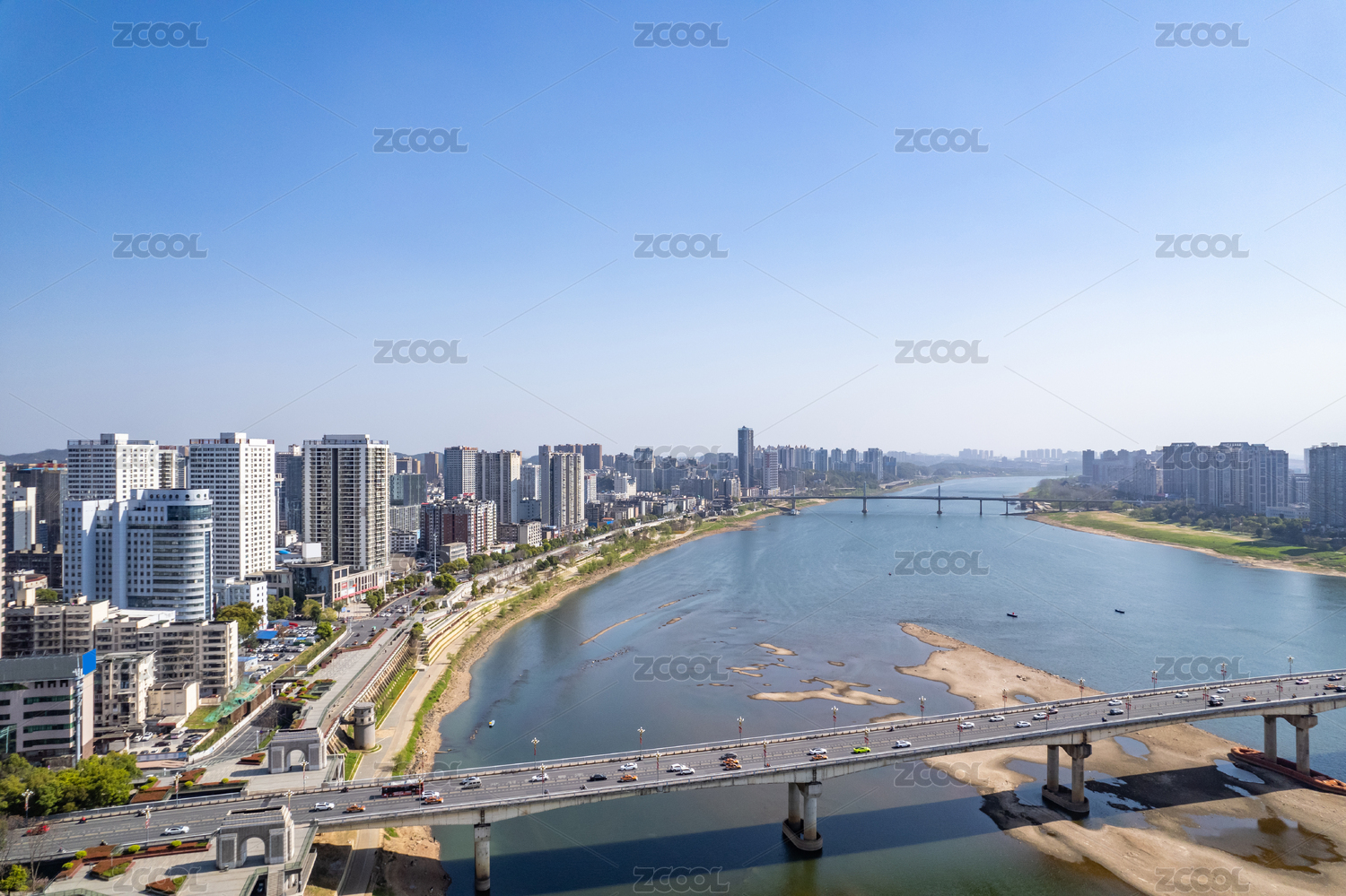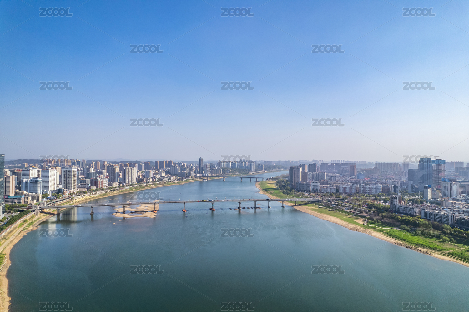 中国株洲湘江两岸城市风光航拍