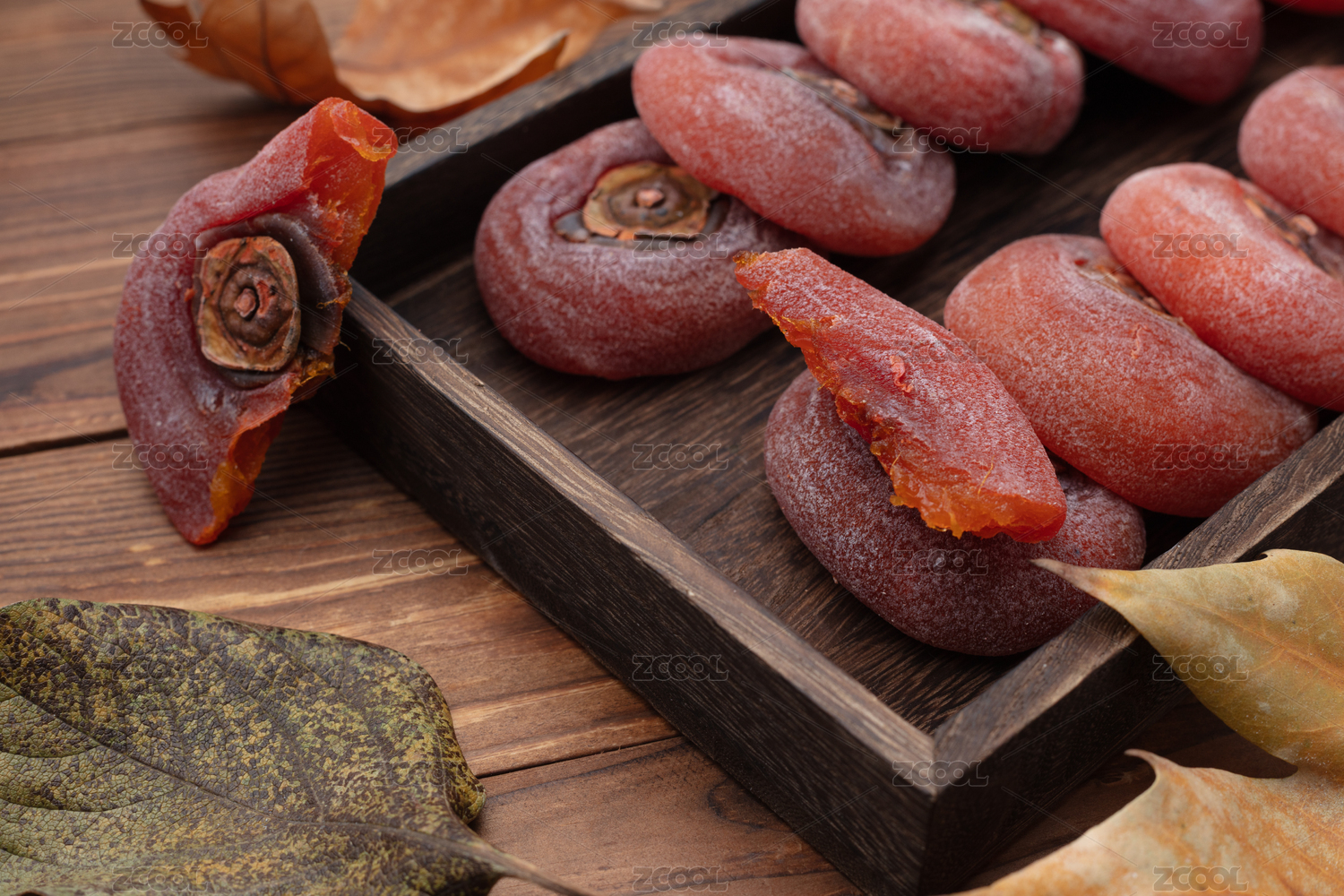 木纹桌上的柿饼
