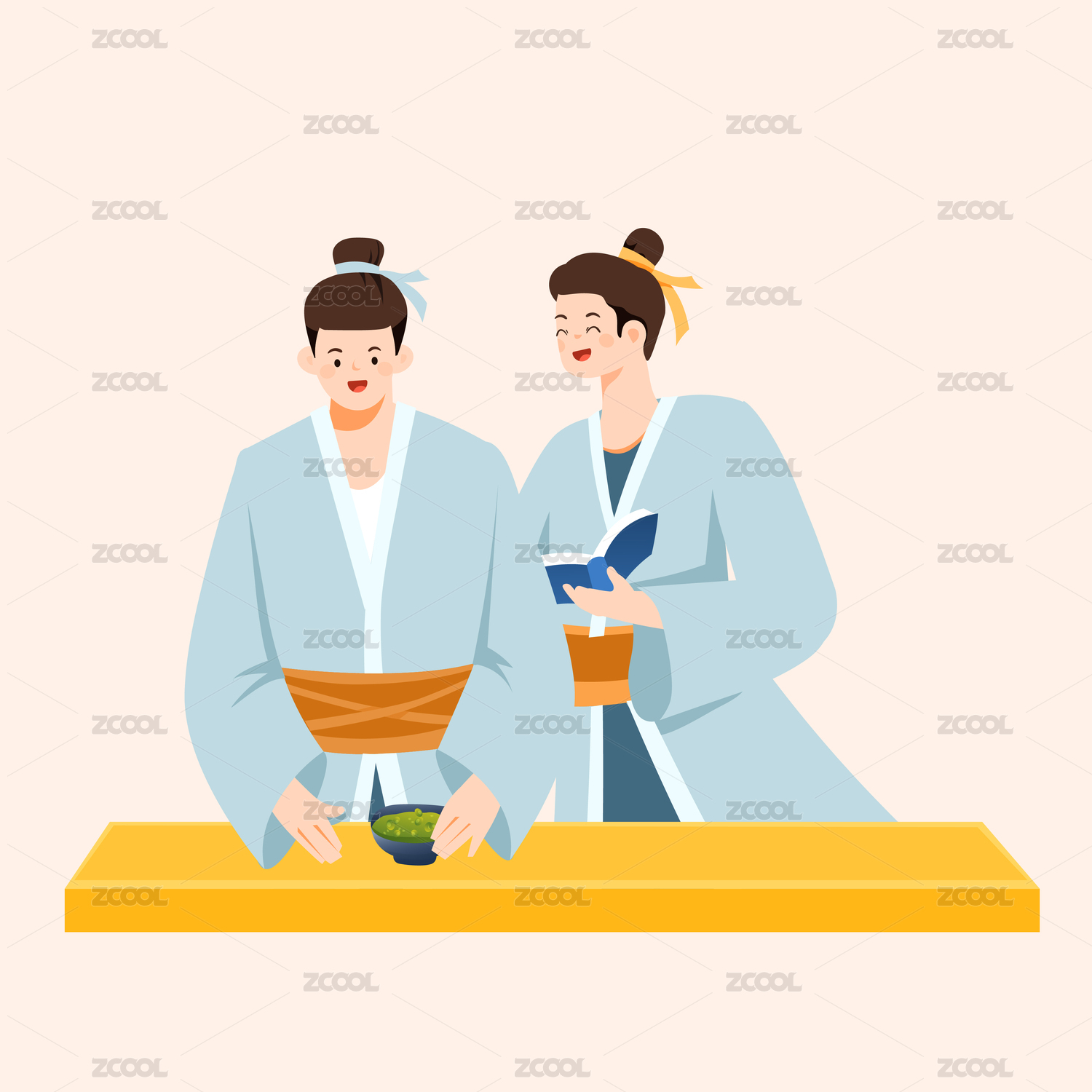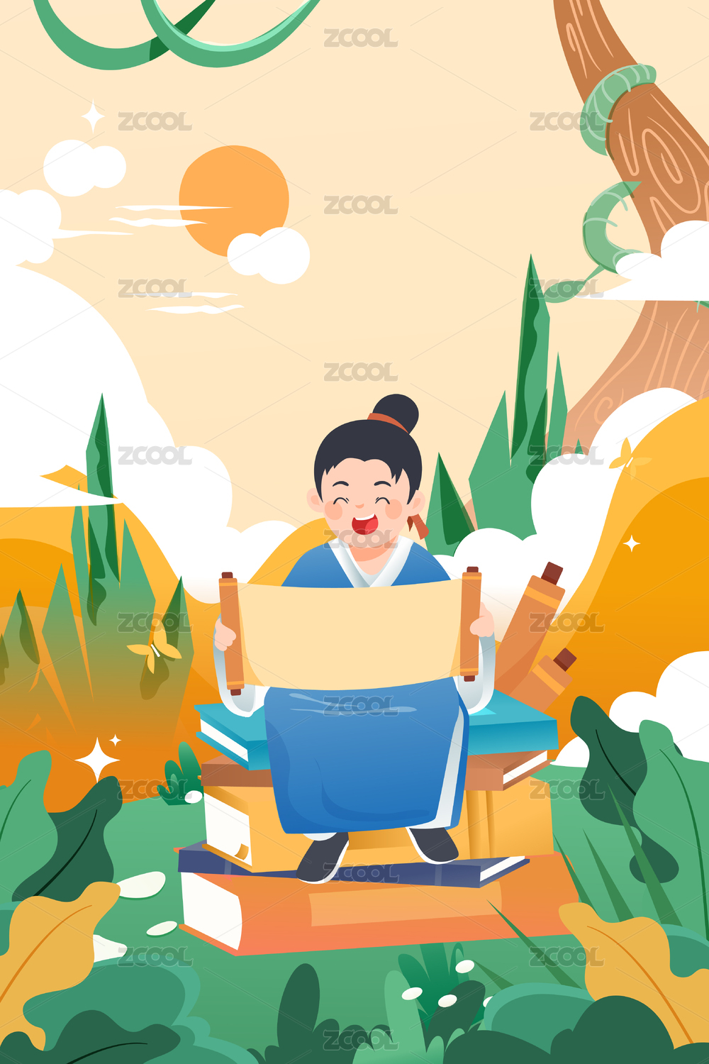 成语故事凿壁偷光古代绿色衣服书生借着光