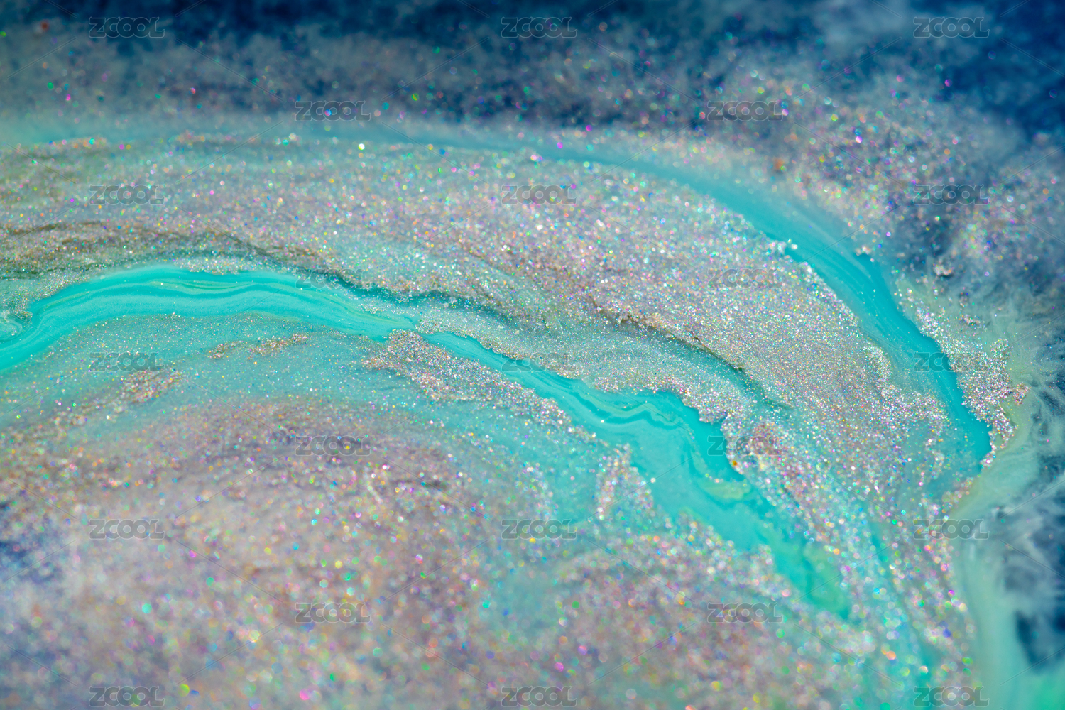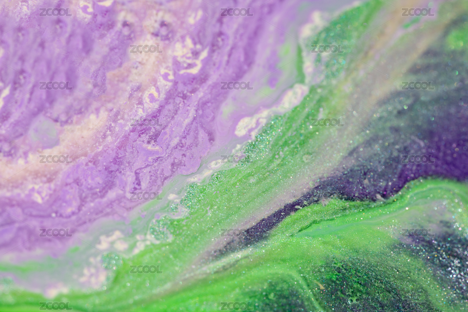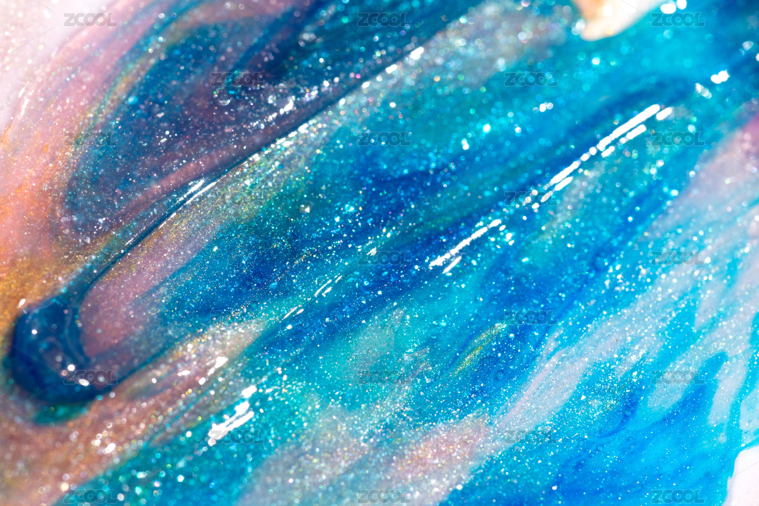 多种丙烯颜料融合扩散成微距河流