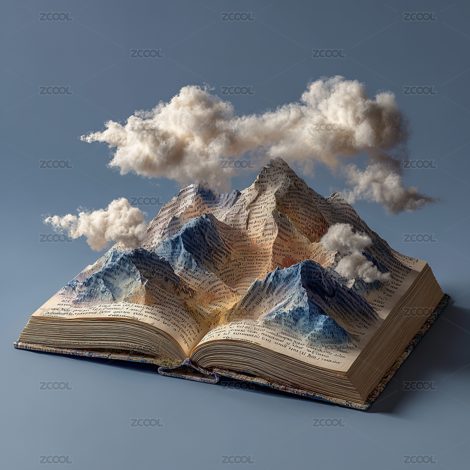 3D书本上的山川风景创意合成场景