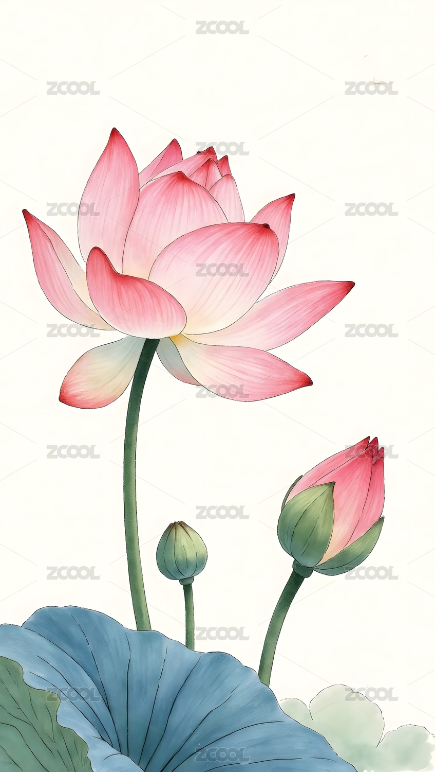 水彩画中的荷花和荷叶