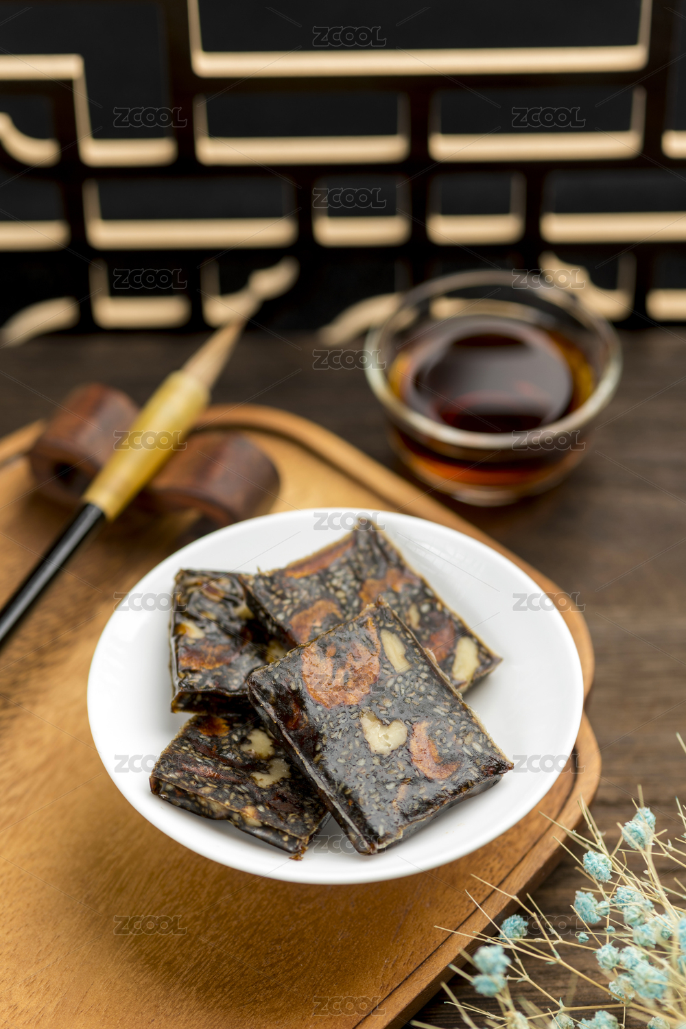 桌面上的盘子里的美味可口的阿胶膏