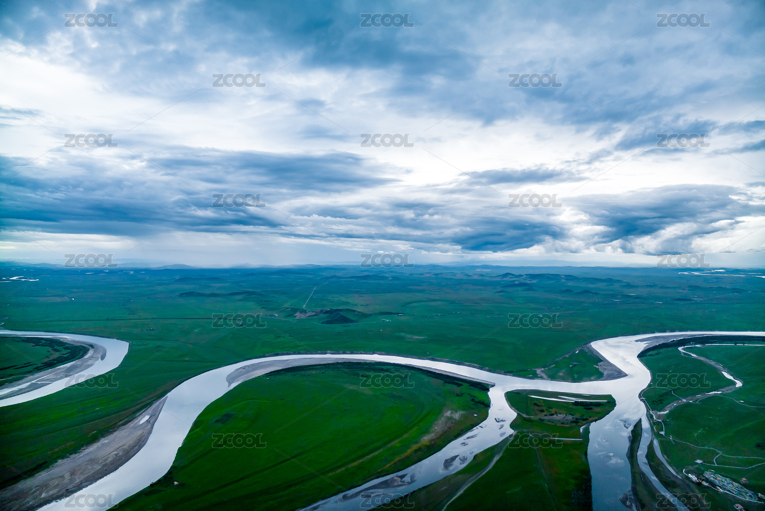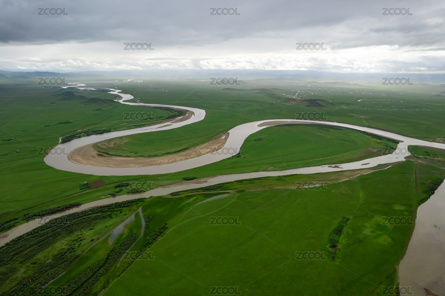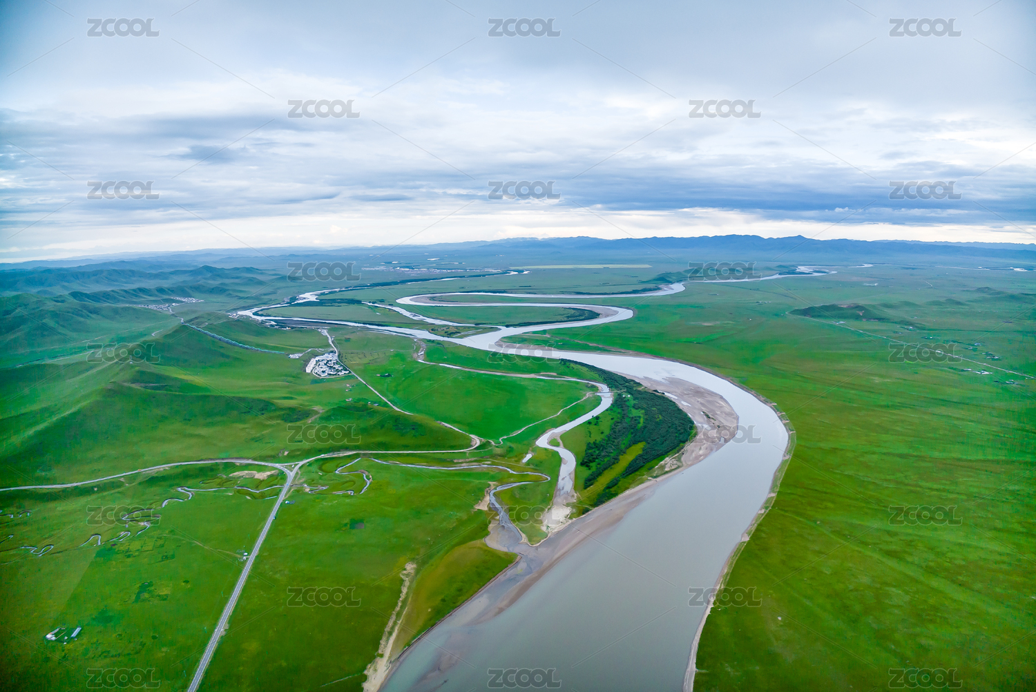 草原河谷河流湿地生态环境航拍