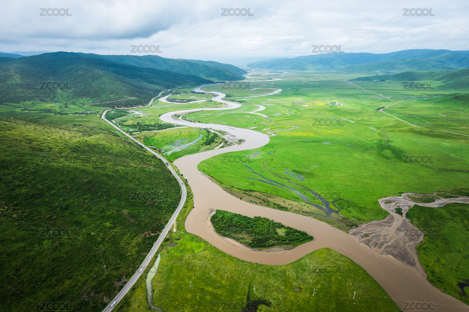 河流,草原,户外,绿色,航拍视角,自然美,甘南,川西,川西高原,黄河