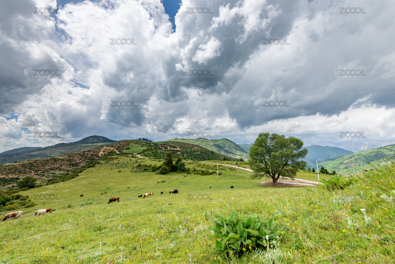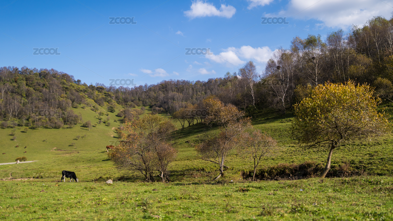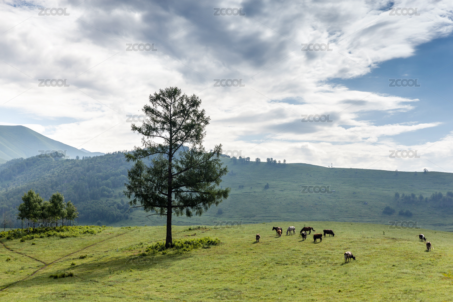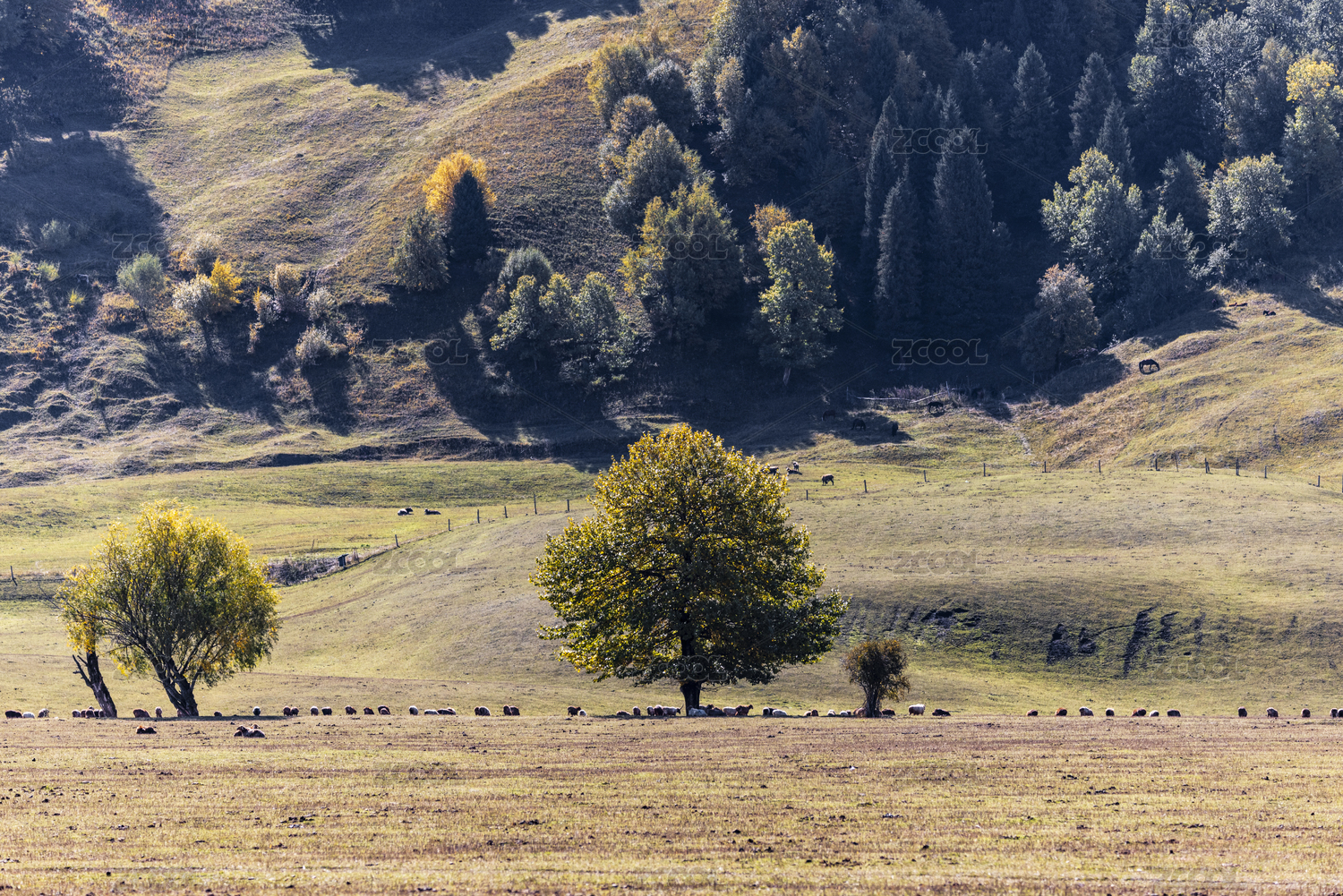 重庆,武隆,仙女山,高山草原,树,阳光,动物,牧场,放牧,吃草