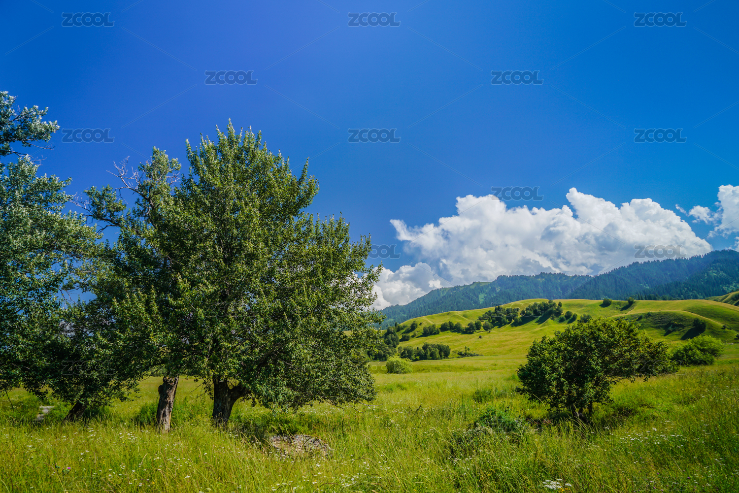 中国新疆伊犁那拉提草原的森林草原和牧场