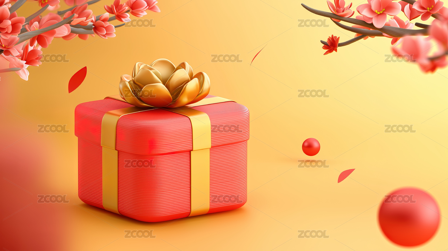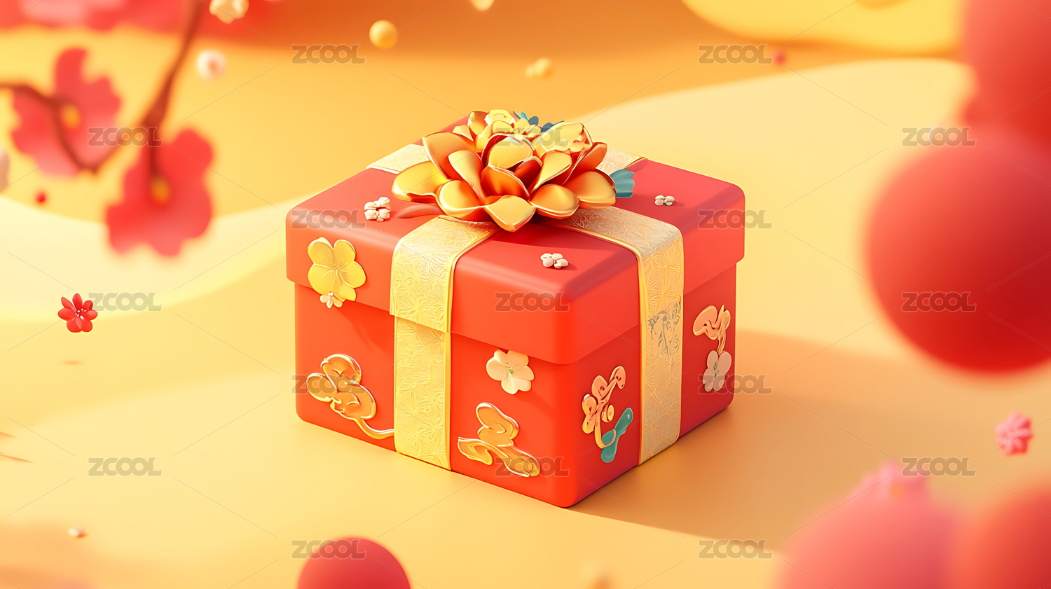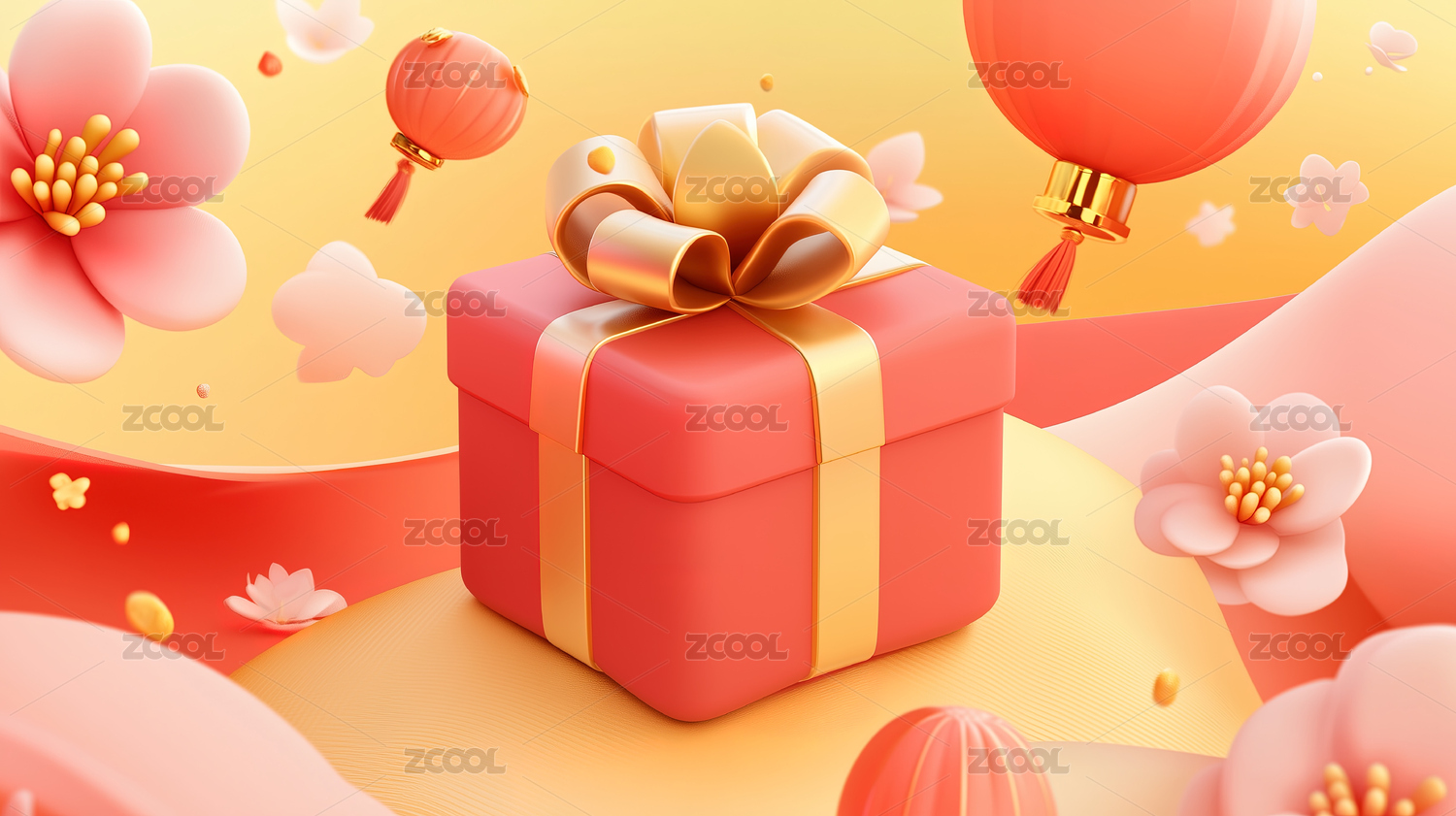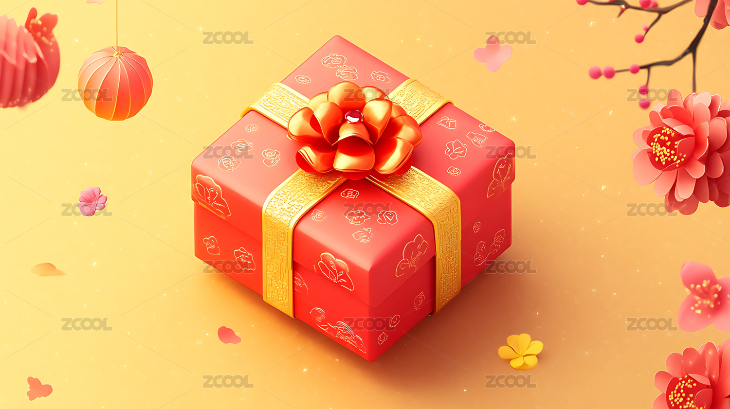 新年元旦元宵节日高级礼物礼物盒电商海报