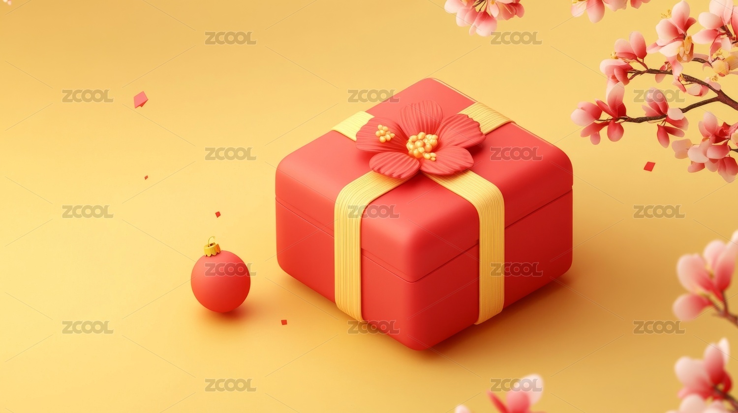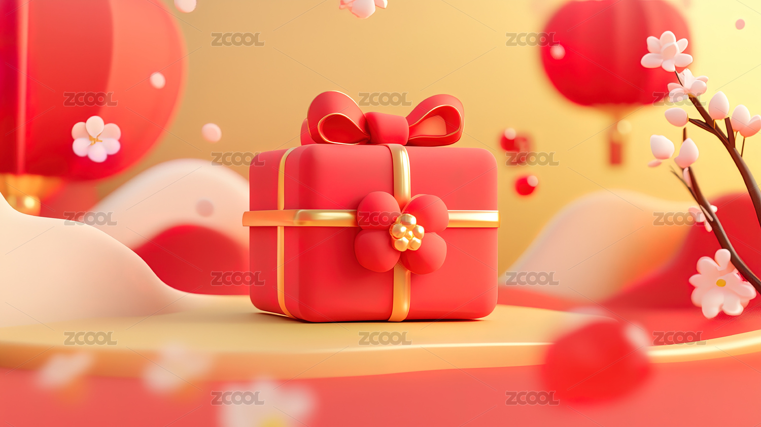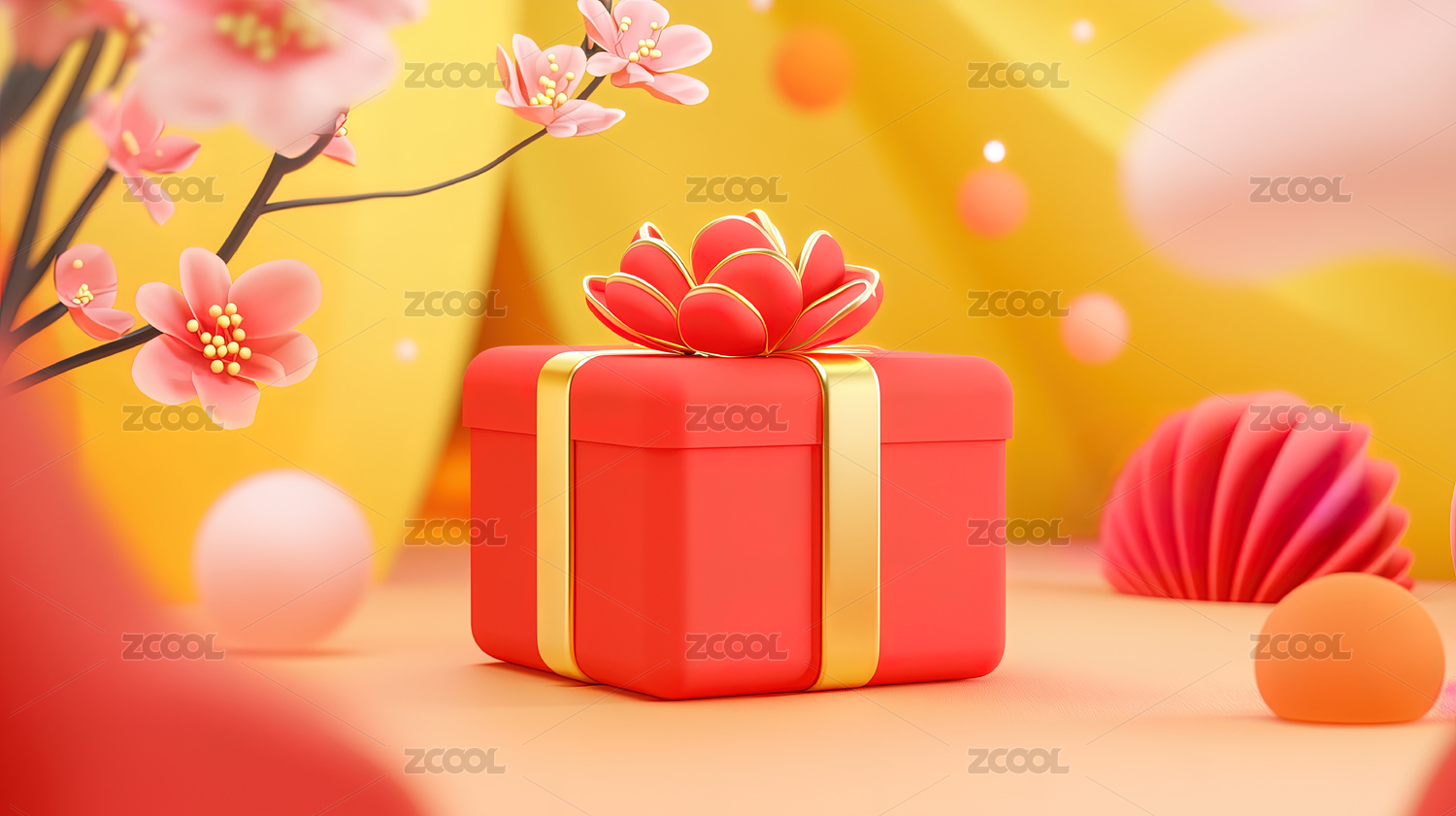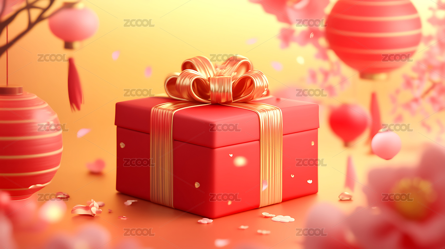 新年元旦元宵节日高级礼物礼物盒电商海报