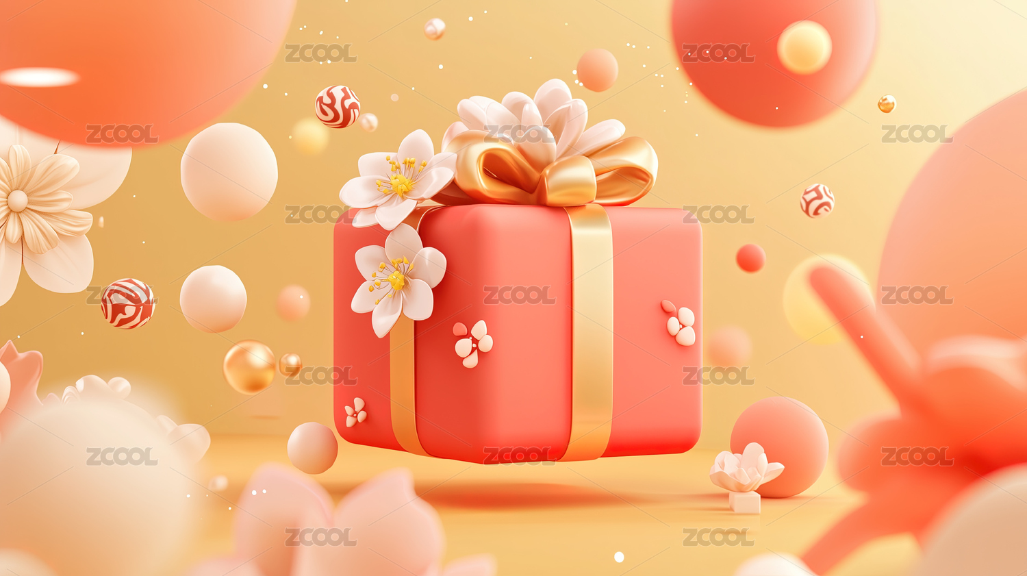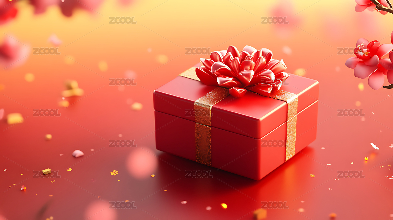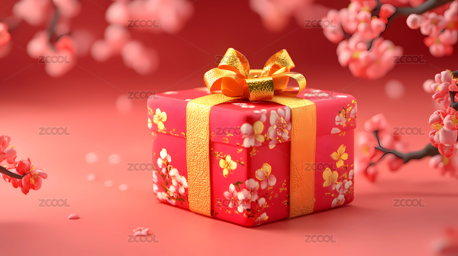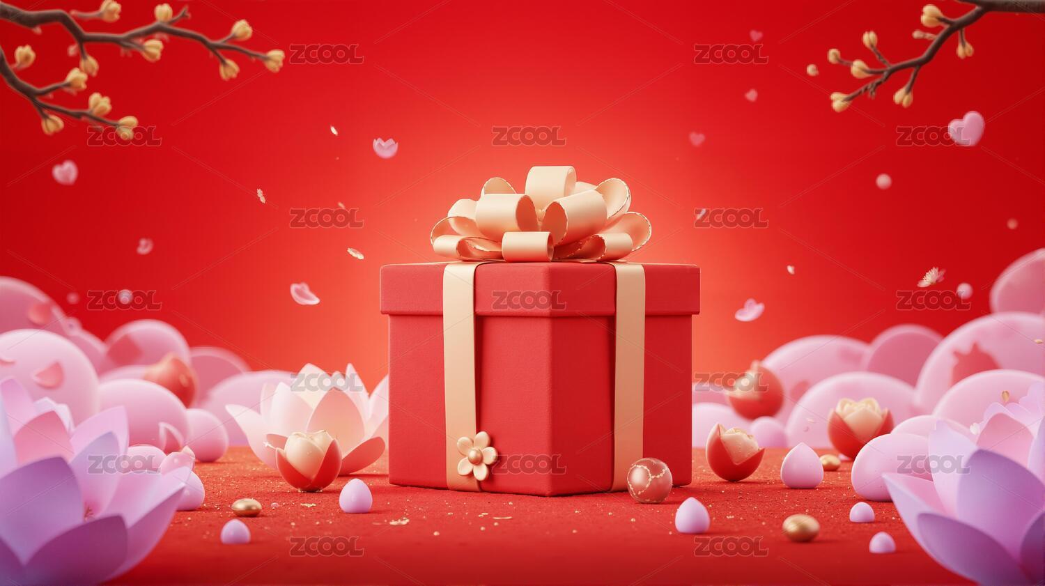 新年元旦元宵节日高级礼物礼物盒电商海报