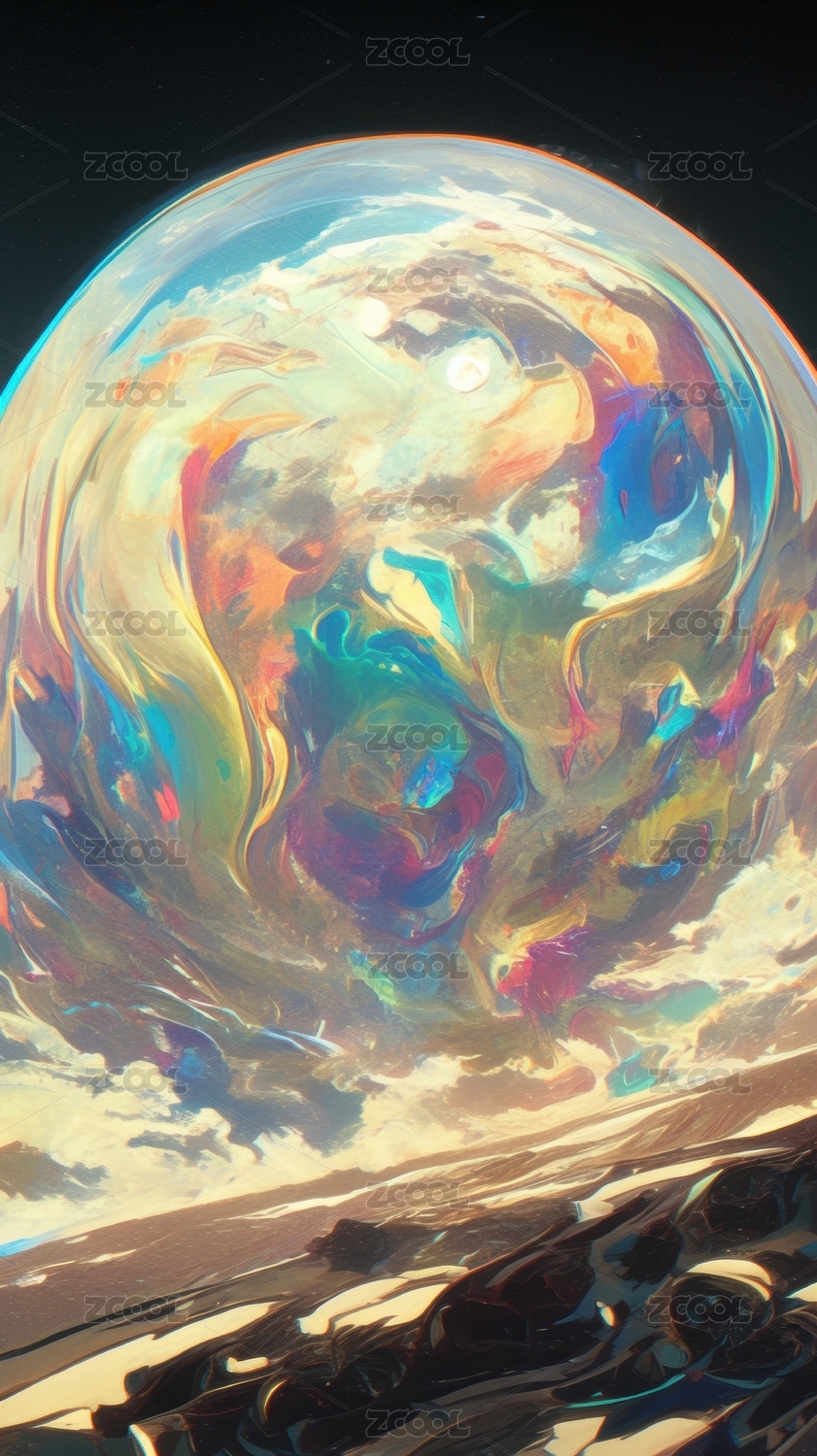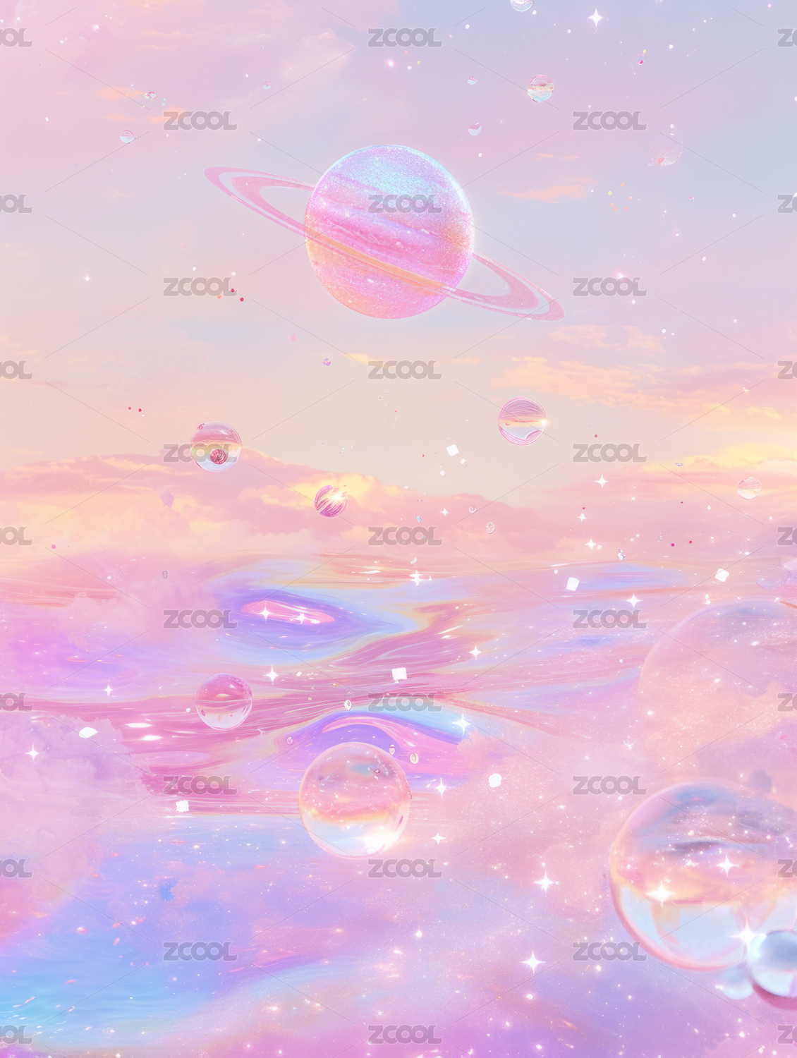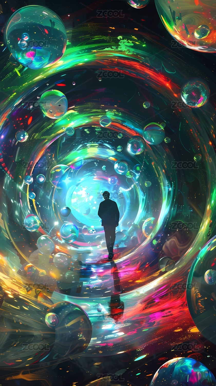 时空麋鹿在充满梦幻云彩泡泡的山涧里嬉戏