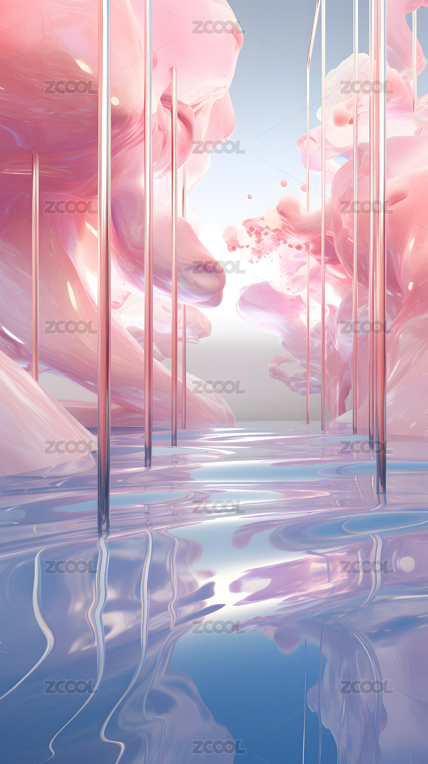 时尚优雅抽象起伏沙漠宝石珍珠3D立体插画