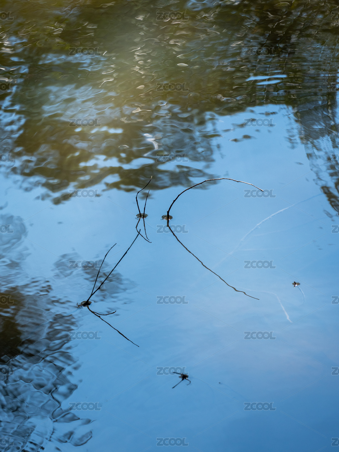 枯荷枝干倒影