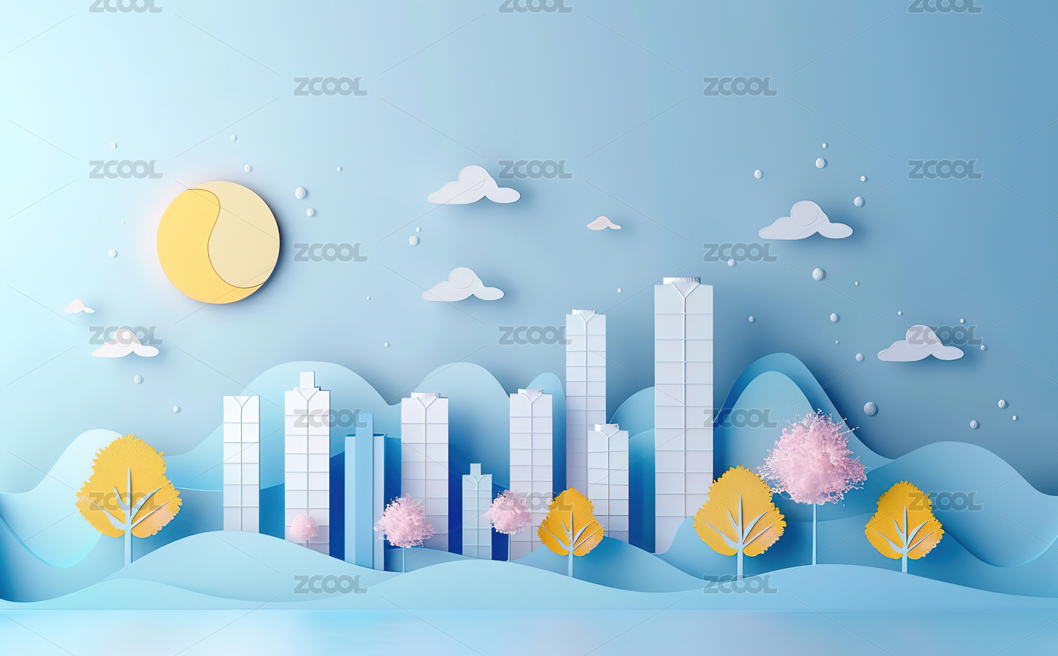 纸艺城市风光清新卡通风格
