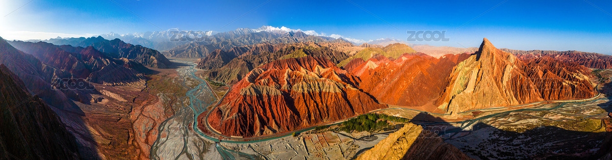 中国新疆阿克陶县奥依塔克红山峡谷全景